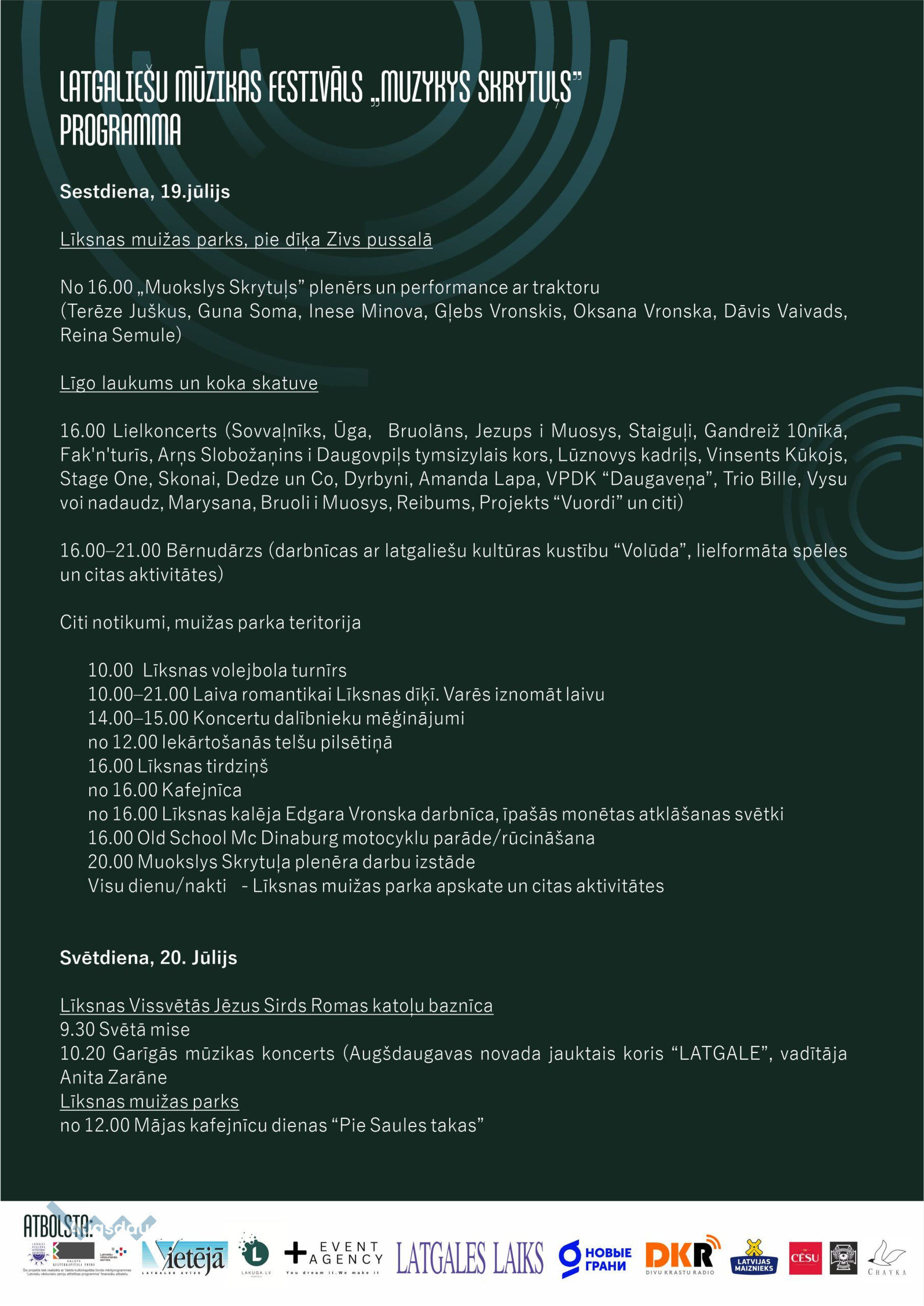 19.-20. jūlijā latgaliešu mūzikas festivāls “Muzykys Skrytuļs”