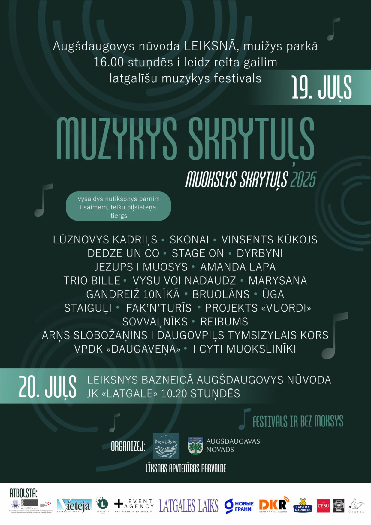 Leģendārais latgaliešu mūzikas festivāls “Muzykys Skrytuļs” atgriežas Līksnā 19.jūlijā!