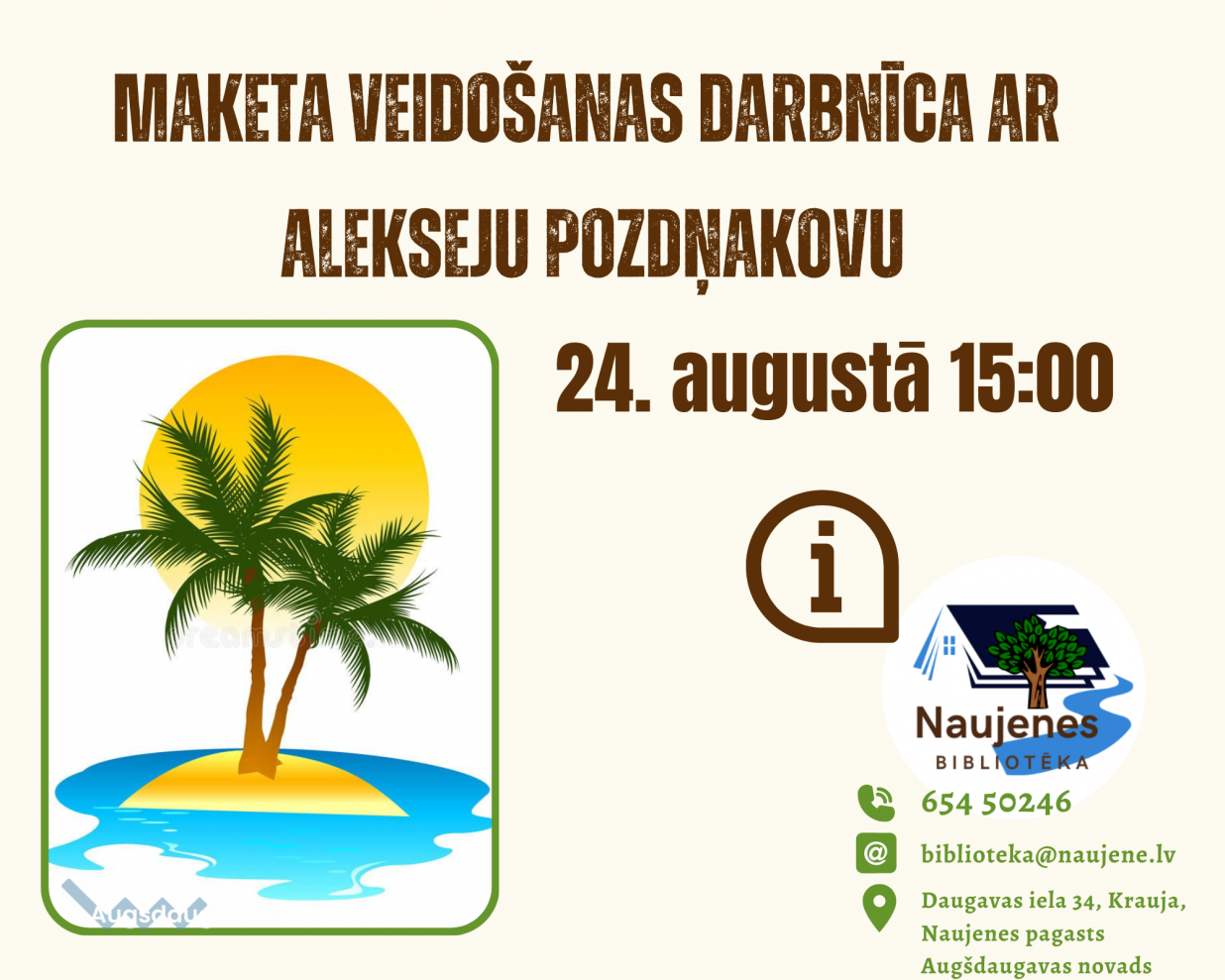 NovadsAktualitātesJaunumi24. augustā Naujenes bibliotēkā notiks maketa veidošanas darbnīca ar Alekseju Pozdņakovu!