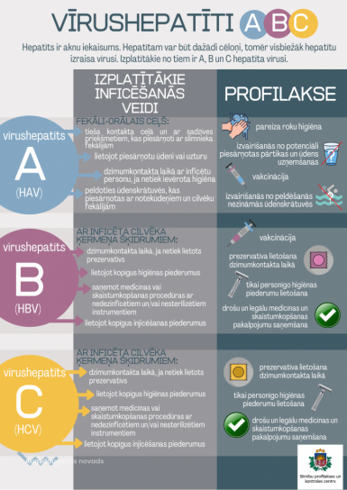 Šogad Pasaules hepatīta dienasietvaros Slimību profilakses un kontroles centra (SPKC) speciālisti ir sagatavojuši vizuālo materiālu par B un C hepatīta profilaksi. Aicinām izmantot šo un jau iepriekš izstrādātos materiālus savas pašvaldības sabiedrības informēšanai par vīrushepatītiem: