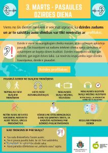 Katru gadu 3. martā tiek atzīmēta Pasaules dzirdes diena, ar mērķi veicināt sabiedrības izpratni par novēršamiem dzirdes traucējumiem vai zudumu. Viens no šī gada dzirdes dienas mērķiem ir veicināt izpratni par to, ka dzirdes zudums un ar to saistītās ausu slimības var tikt novērstas ar profilaksi. Svarīgi ir profilaktiski novērst iespējamos dzīves laikā iegūtos dzirdes zudumus, jo lielākā daļa no tiem ir neatgriezeniski un būtiski ietekmē kopējo dzīves kvalitāti.