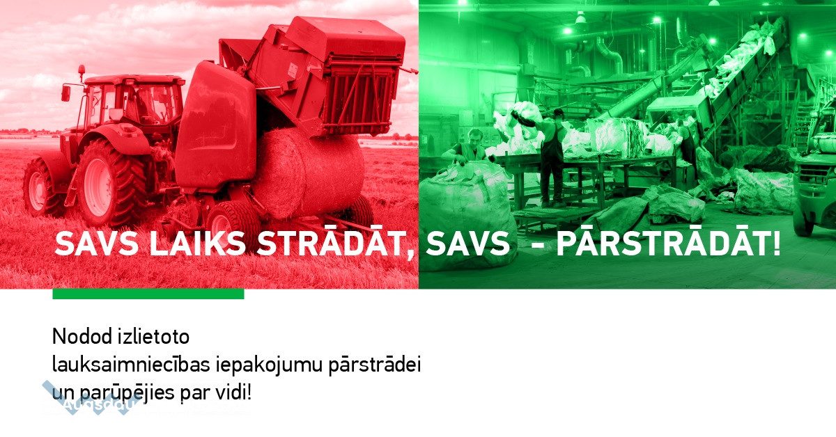 Pēc izlietotā iepakojuma nodošanas zemnieku saimniecības saņem Valsts vides dienestam paredzētu apliecinājumu par vides aizsardzības un atkritumu apsaimniekošanas prasībām atbilstošu lauksaimniecības iepakojuma apsaimniekošanu. Savukārt savāktais iepakojums nonāk pārstrādē, lai pārtaptu jaunās izejvielās, kas tiek izmantotas jaunu produktu, tostarp dažādu iepakojumu ražošanai. Piemēram, SIA “Eco Baltia vide” zemnieku saimniecībās savāktos iepakojumus nodod pārstrādei polimēru iepakojumu pārstrādes rūpnīcā SIA “Nordic Plast”, Olainē.