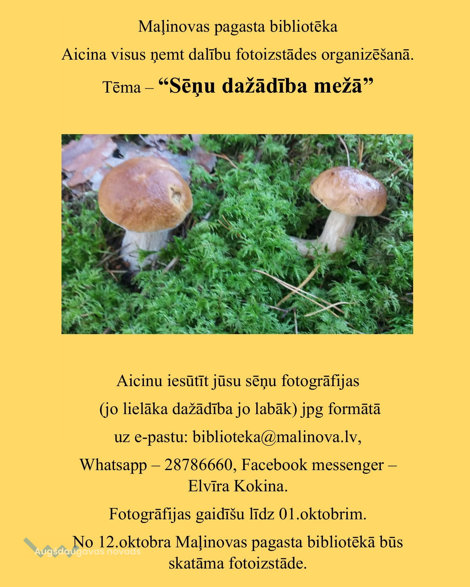🍄Maļinovas pagasta bibliotēka aicina visus ņemt dalību fotoizstādes organizēšanā. Tēma - "Sēņu dažādība mežā". Sēņu fotogrāfijas jāiesūta (jo lielāka dažādība, jo labāk) jpg formātā: