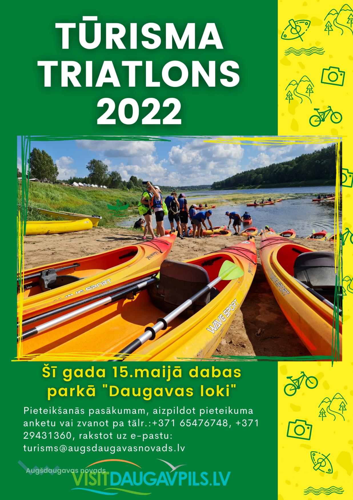 Arī šogad, uzsākot aktīvo tūrisma sezonu Augšdaugavas novadā, jau 15. maijā dabas parkā “Daugavas loki” norisināsies ikgadējs vasaras piedzīvojums – Tūrisma triatlons, kurā tiek aicināti piedalīties visi aktīvā dzīvesveida un dabas mīļotāji. Tūrisma triatlons norisināsies Augšdaugavas novada Naujenes pagastā, Slutišķu un Dileviču ciemu teritorijā. Triatlona trase būs ļoti ainaviska un tiks iedalīta trijos posmos – laivošana ar smailīti, riteņbraukšana un foto orientēšanas. Uzvarēs visatjautīgākie un vērīgākie pasākuma dalībnieki.