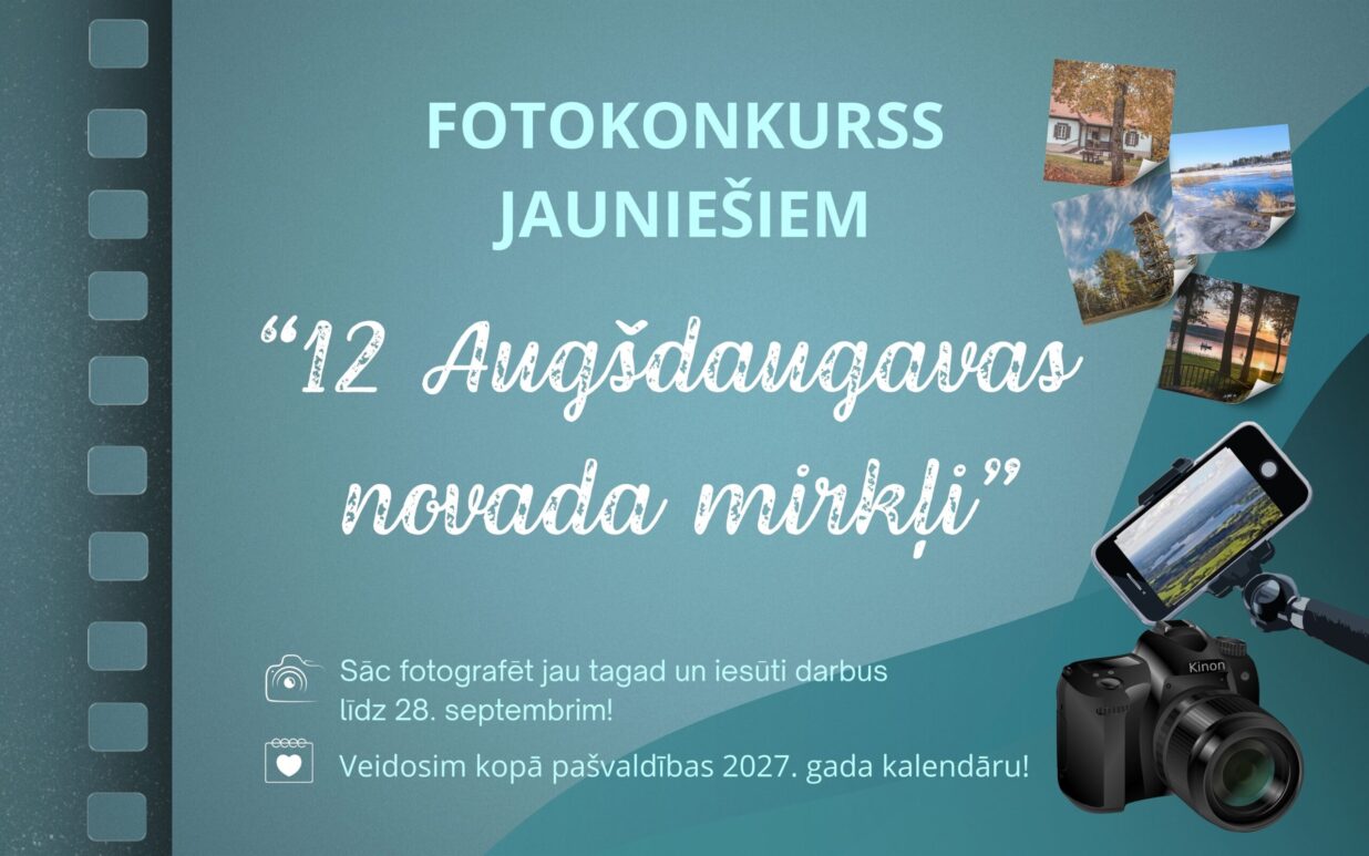 Augšdaugavas novada pašvaldības Informācijas un sabiedrisko attiecību nodaļa un Izglītības pārvaldes Jaunatnes lietu daļa izsludina fotokonkursu “12 Augšdaugavas novada mirkļi”, aicinot novada jauniešus piedalīties pašvaldības 2027. gada kalendāra izveidē.