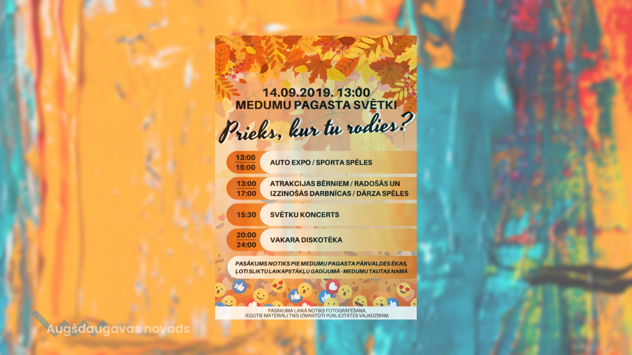 Ļoti sliktu laikapstākļu gadījumā pasākuma aktivitātes notiks nevis pie Medumu pagasta pārvaldes ēkas, bet Medumu Tautas nama zālē.