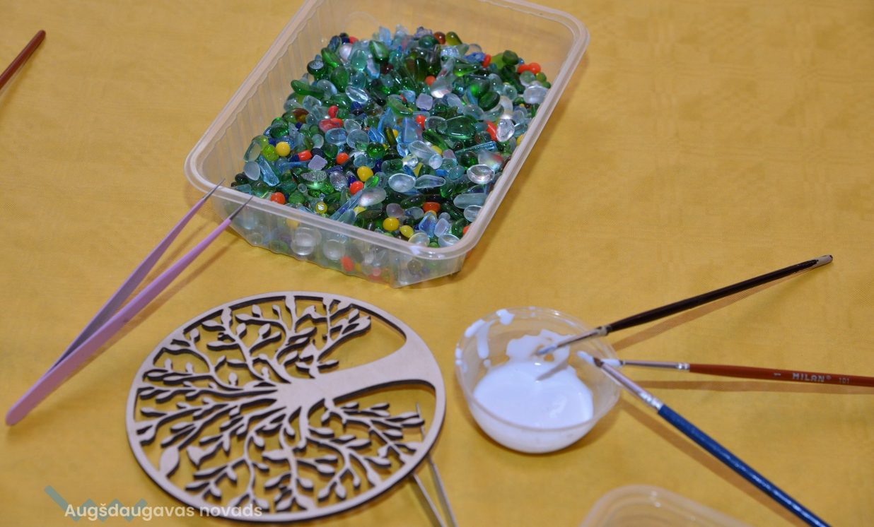 Savukārt Kaldabruņas pagasta biedrība “Ūdenszīmes” aicināja uz radošām darbnīcām, kuru laikā ikviens varēja sev izgatavot skaistu suvenīru, rotātu ar stikla pērlītēm.