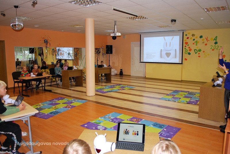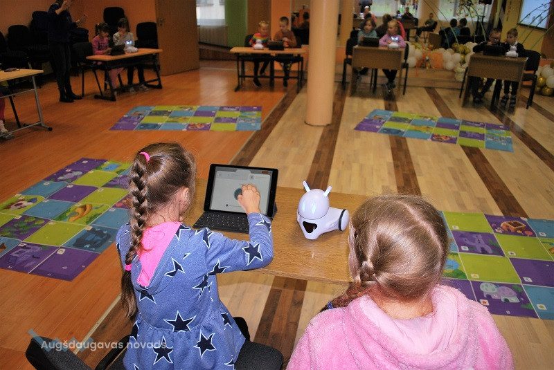 6. oktobrī, sadarbībā ar Daugavpils Inovāciju centru, Naujenes pamatskolā notika STEM jomas izglītojošās nodarbības . Skolas aktu zāle uz laiku kļuva par robotu pasauli, jo šeit skolēniem noritēja nodarbība ar Photon robotiem. Mūsu audzēkņi uz laiku kļuva par robotu pavēlniekiem. Katram nodarbības dalībniekam bija iespēja iemēģināt roku robotu vadīšanā. Izrādās, ka Photon robots ir lielisks un viegls rīks programmēšanas prasmju apguvei. Nodarbības laikā mūsu skolēni interesantā un aizraujošā veidā apguva pirmos soļus robotikā. Ja sākumā daudziem likās, ka tā ir rotaļlieta, tad, ar to darbojoties, bērni pārliecinājās, ka Photon robots nav rotaļlieta šī vārda klasiskajā izpratnē. Par spīti nelielajam izmēram tas ir aprīkots ar 10 dažādiem sensoriem, kas robotam ļauj mijiedarboties ar apkārtējo vidi. Piemēram, Photon prata reaģēt uz skolēnu pieskārienu, gaismu, šķēršļiem un skaņām. Bet vēl tas arī mērīja attālumu, leņķus, atskaņoja dažādas skaņas, spīdināja acis un radziņus attēlojot emocijas, kā arī komunicēja ar citiem Photon robotiem. Nodarbībās bērni, Inovācijas centra speciālistes vadībā, paši programmēja, plānoja uzdevumus, kurus robots labprāt izpildīja. Šīs nodarbības bija aizraujošas un izglītojošas gan sākumskolas, gana pamatskolas skolēniem.