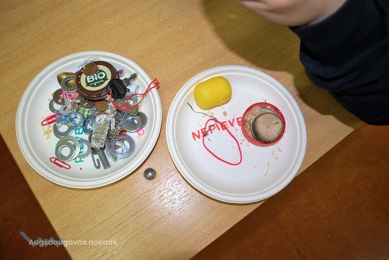 Otras nodarbības laikā sākumskolas skolēni iepazina dabaszinību un fizikas likumus, veicot dažādus interesantus eksperimentus ar magnētiem. Viņi varēja pārtapt par “burvju māksliniekiem”, jo pēkšņi pie viņu rokām pielipa papīra saspraudes. Bērni uzzināja, ko magnēts pievelk, bet ar ko “nedraudzējas”. Nodarbības noslēguma katrs skolēns izveidoja savu magnētu.