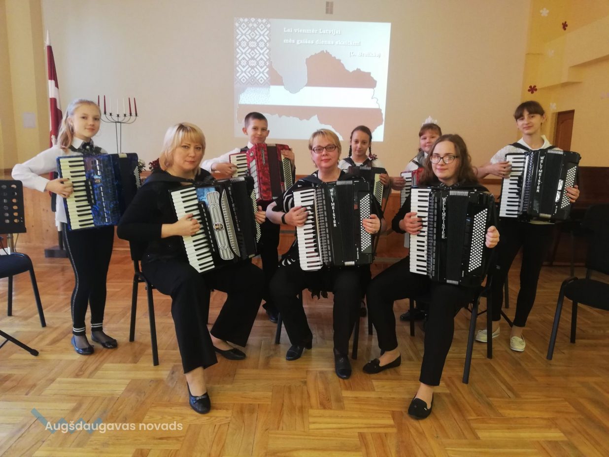 13. un 15. novembrī , pasākumos, kas bija veltīti Latvijas Republikas 101.dzimšanas dienai, veiksmīgi uzstājās Naujenes Mūzikas un mākslas skolas pedagogi, Tatjana Jukuma, Svetlana Vasiļjeva un Jeļena Nitecka, ar saviem audzēkņiem ( Naujenes Mūzikas skolas Skrudalienas mācību punkts) . Ceram, ka jaunie akordeonisti ar savu muzicēšanu sagādāja aizkustinošus mirkļus koncerta dalībniekiem un apmeklētājiem. Paldies Silenes pamatskolas un Salienas vidusskolas administrācijām par ielūgumu un sadarbību!