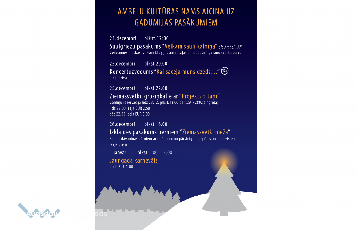 AMBEĻU KULTŪRAS NAMS AICINA UZ GADUMIJAS PASĀKUMIEM
