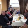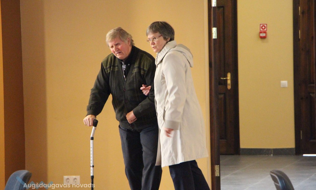 Ambeļu kultūras nama zālē seniorus gaidīja uzklāti galdiņi ar cienastu, kuru sagatavoja Ambeļu pagasta iestāžu darbinieki, pateicoties Daugavpils novada domes un pagasta pārvaldes finansējumam.
