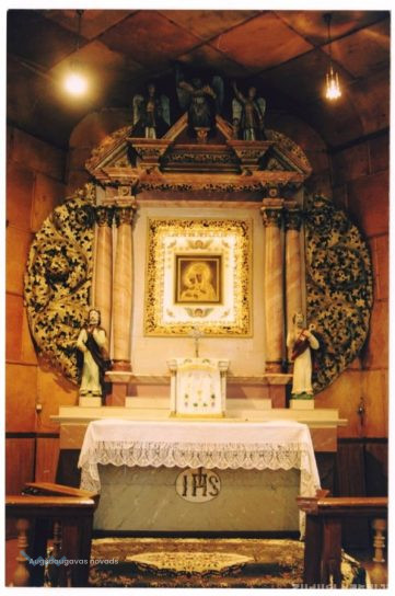 Baznīcā ir viens altāris, kurā ir Jaunavas Marijas glezna. Altāris ir veidots baroka stilā, rotāts ar mākslinieciski augstvērtīgiem un īpatnējiem kokgriezumiem, un tas ir 18. gadsimta beigu valsts nozīmes mākslas piemineklis. Baznīcā ir saglabājušies vairāki mākslas priekšmeti. Nozīmīgs Latgales baroka koktēlniecības paraugs ir 18. gadsimtā veidotais altāra rentabls. Redzamas ir vairāku anonīmu profesionāli mākslinieku 18. gadsimta otrās puses gleznas —"Svētais Jans Nepomuks", "Svētais Francisks Ksaverijs", "Svētais Ignācijs Lojola", ka arī 18. gadsimta beigu darbs "Golgāta". Daļa baznīcas gleznu un amatniecības darbu glabājas Rundāles pils muzejā.