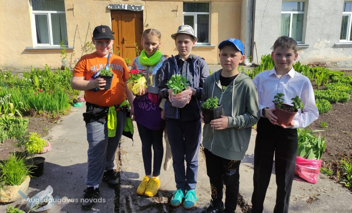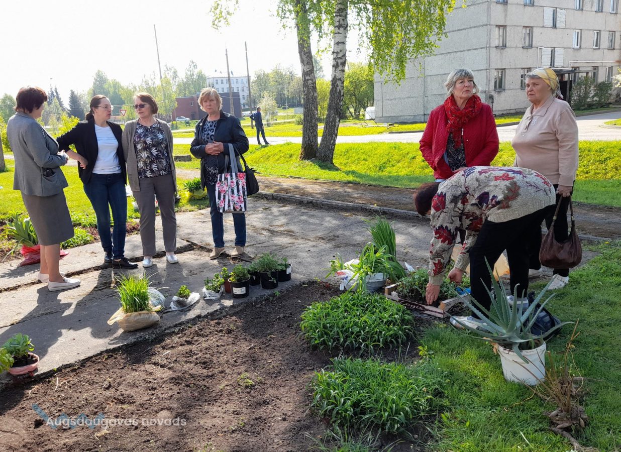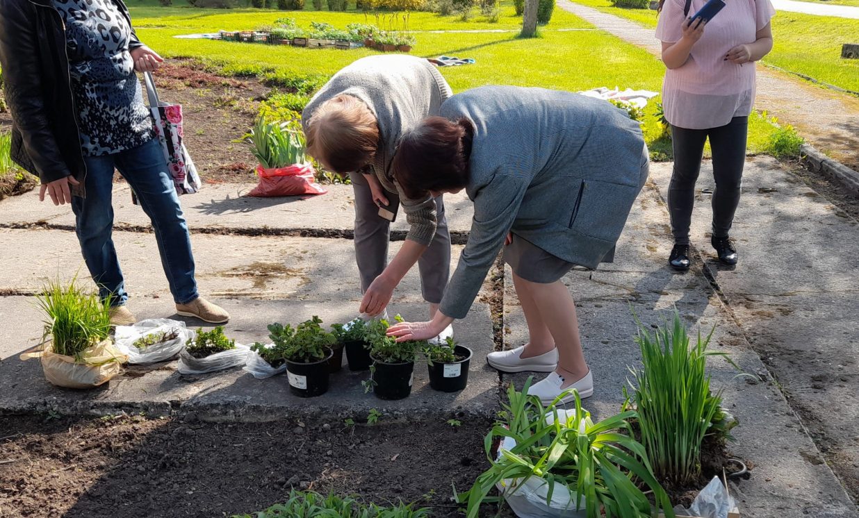 15. maijā plašais stādu klāsts: jasmīni, dažādu krāsu ceriņi, irbenes, etiķkoks, dievkociņi, kokveida hortenzijas, maijrozītes un daudzgadīgie ziedi – hostas, miķelīši, dienziedes, īrisi tika iestādīts parka teritorijā.