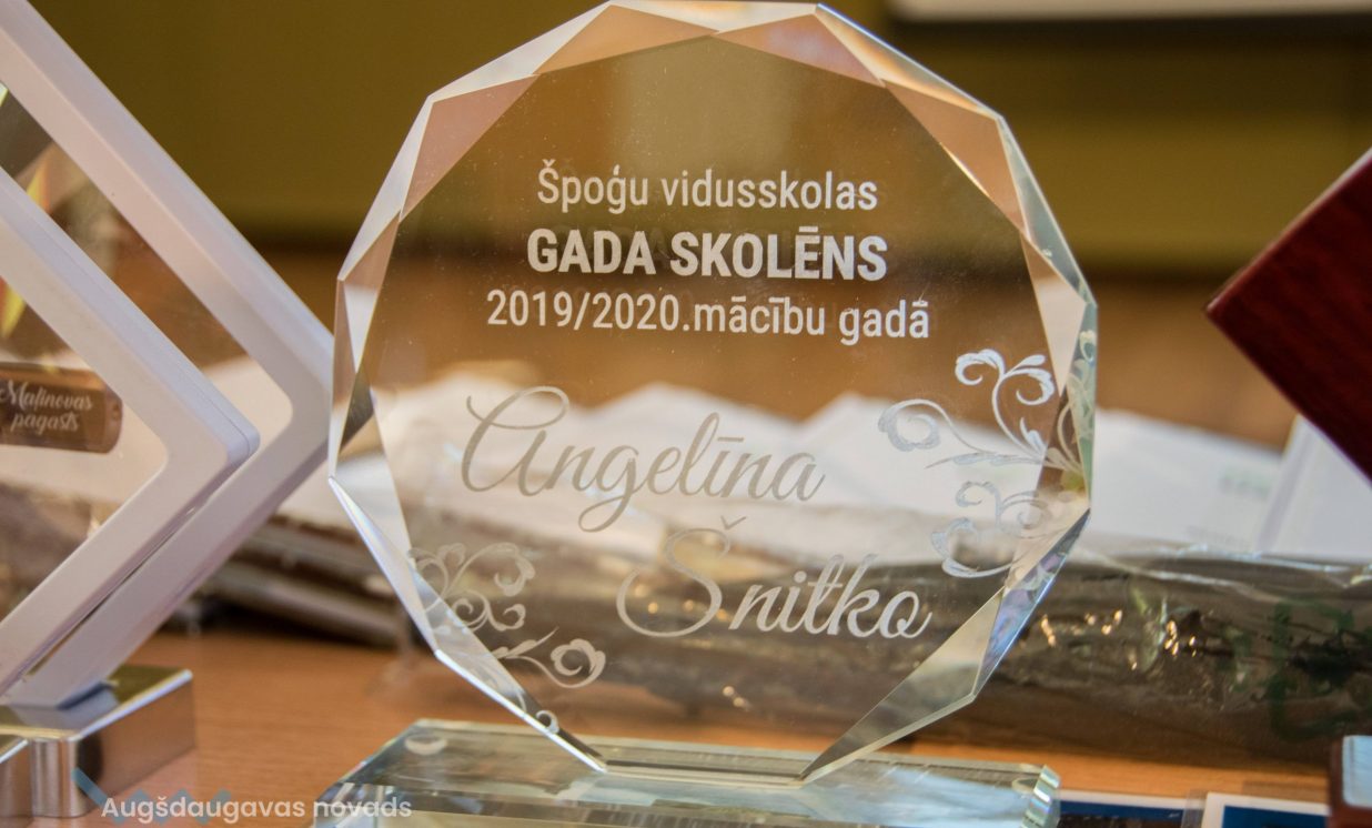 Špoģu vidusskolas audzēkne Angelina Šnitko ir saņēmusi Ministru prezidenta Pateicības rakstu ”par izciliem un teicamiem mācību sasniegumiem”, kā arī Finanšu ministrijas un Izglītības un zinātnes ministrijas izsniegto Simtgades izcilības pateicību un naudas balvu.