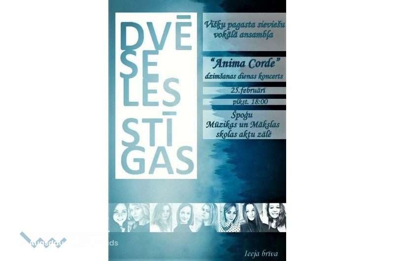 Laipni lūgti uz Višķu pagasta sieviešu vokālā ansambļa "Anima Corde" pirmo dzimšanas dienai veltītu koncertu "Dvēseles stīgas", kas notiks š.g. 25.februārī plkst. 18:00 Špoģu Mūzikas un Mākslas skolas aktu zālē.