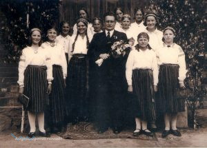 A. Rubenis ar Vaboles sešklasīgās pamatskolas absolventiem izlaiduma dienā. 20.gs. trīsdesmitie gadi