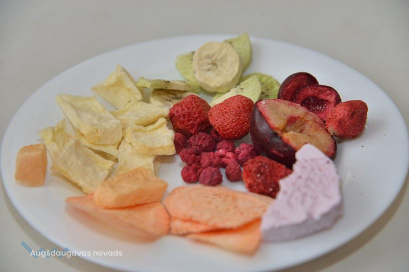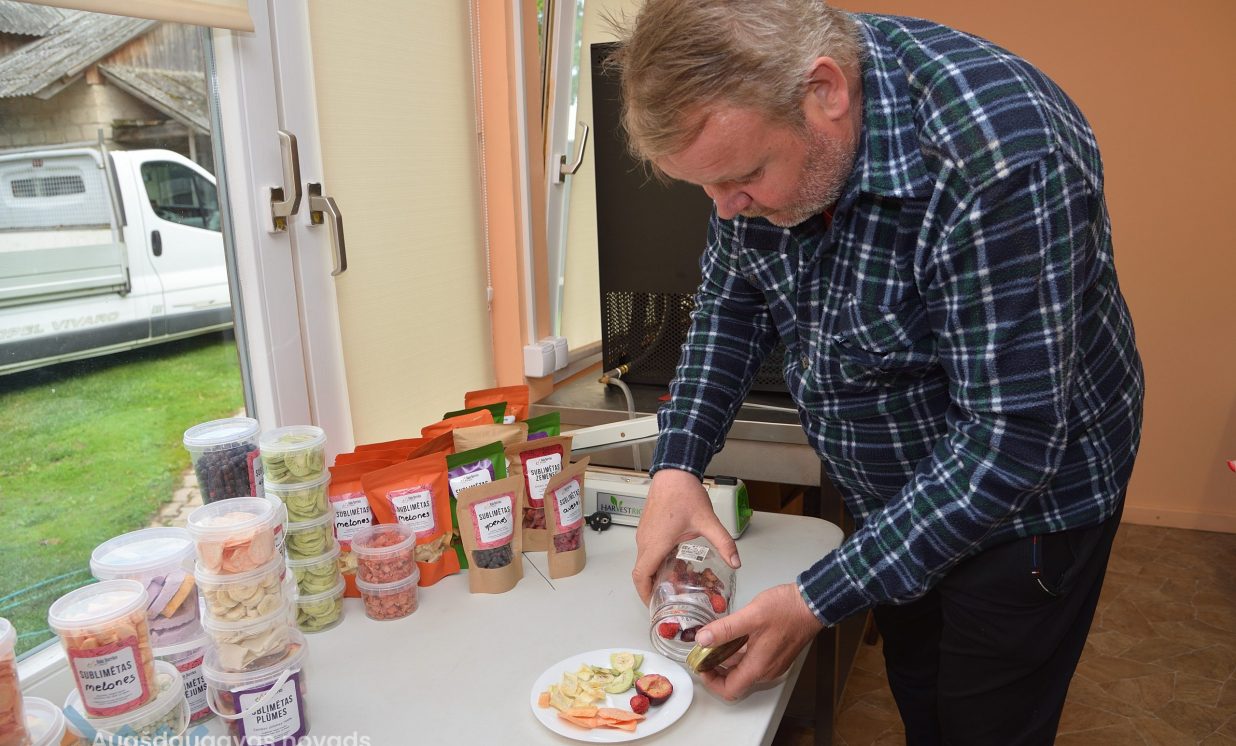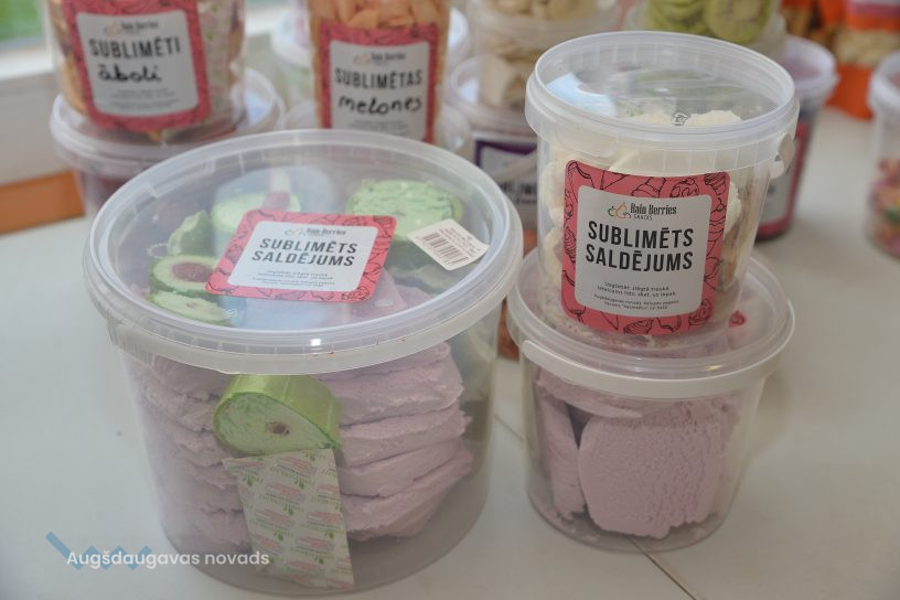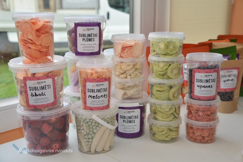 Nelielā ražošanas telpā klusi dūc iekārta, kurā gatavinās kārtējā sublimēto ogu porcija. Saimnieki aicina nogaršot gatavo produkciju, kuru ražot uzsākuši vien pirms mēneša. Paciņās un plastmasas kārbās rindojas visdažādākā produkcija, kas gatava doties pie sava patērētāja. Gan pašu audzēti, gan eksotiski augļi, ogas un dārzeņi – veselīgs našķis, ar ko palutināt garšas kāpiņas.