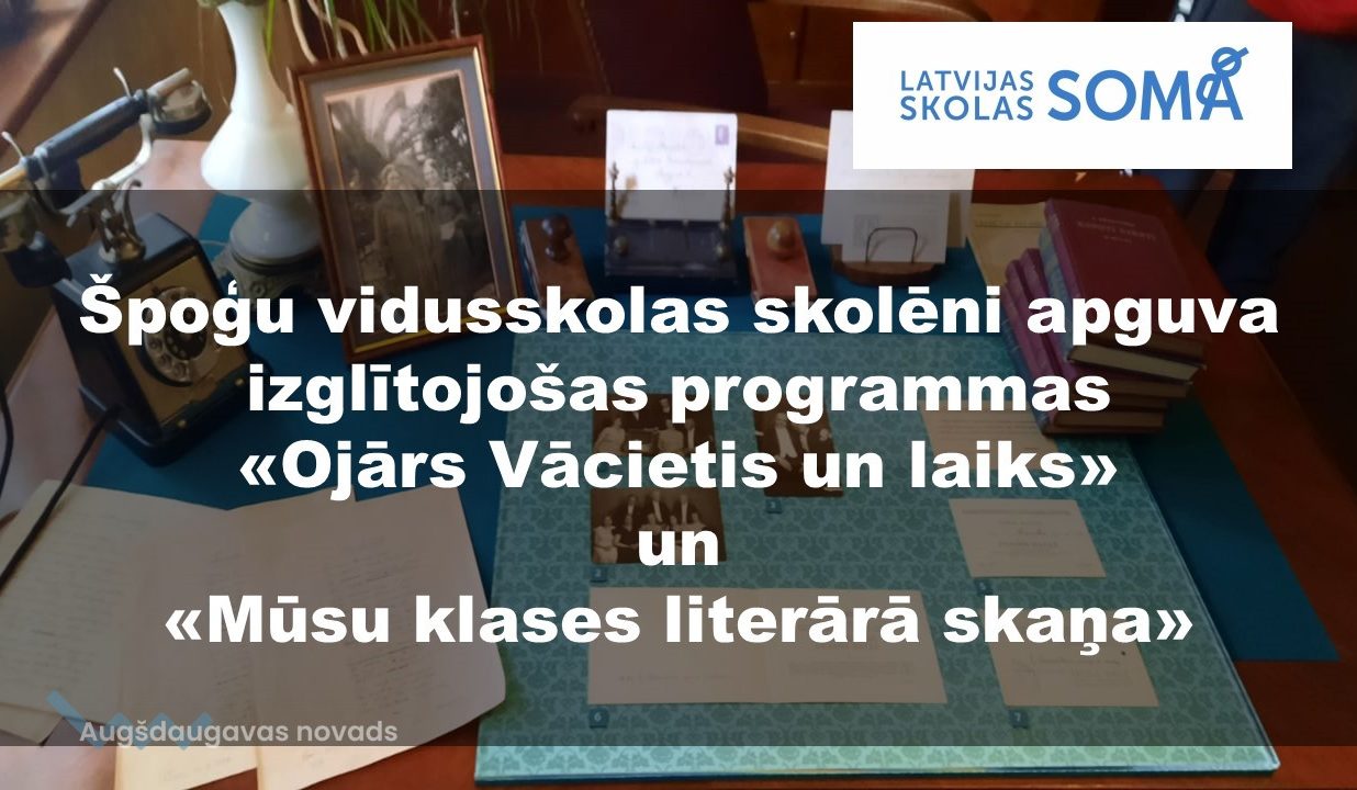 Špoģu vidusskolas 10.-12.klašu skolēniem iniciatīvas “Latvijas skolas soma” ievaros 2022.gada 30.maijā radās iespēja iepazīt ievērojamu pagājušā gadsimta dzejnieku dzīvesvietas - apmeklējot Ojāra Vācieša un Jāņa Akurātera muzejus.