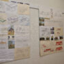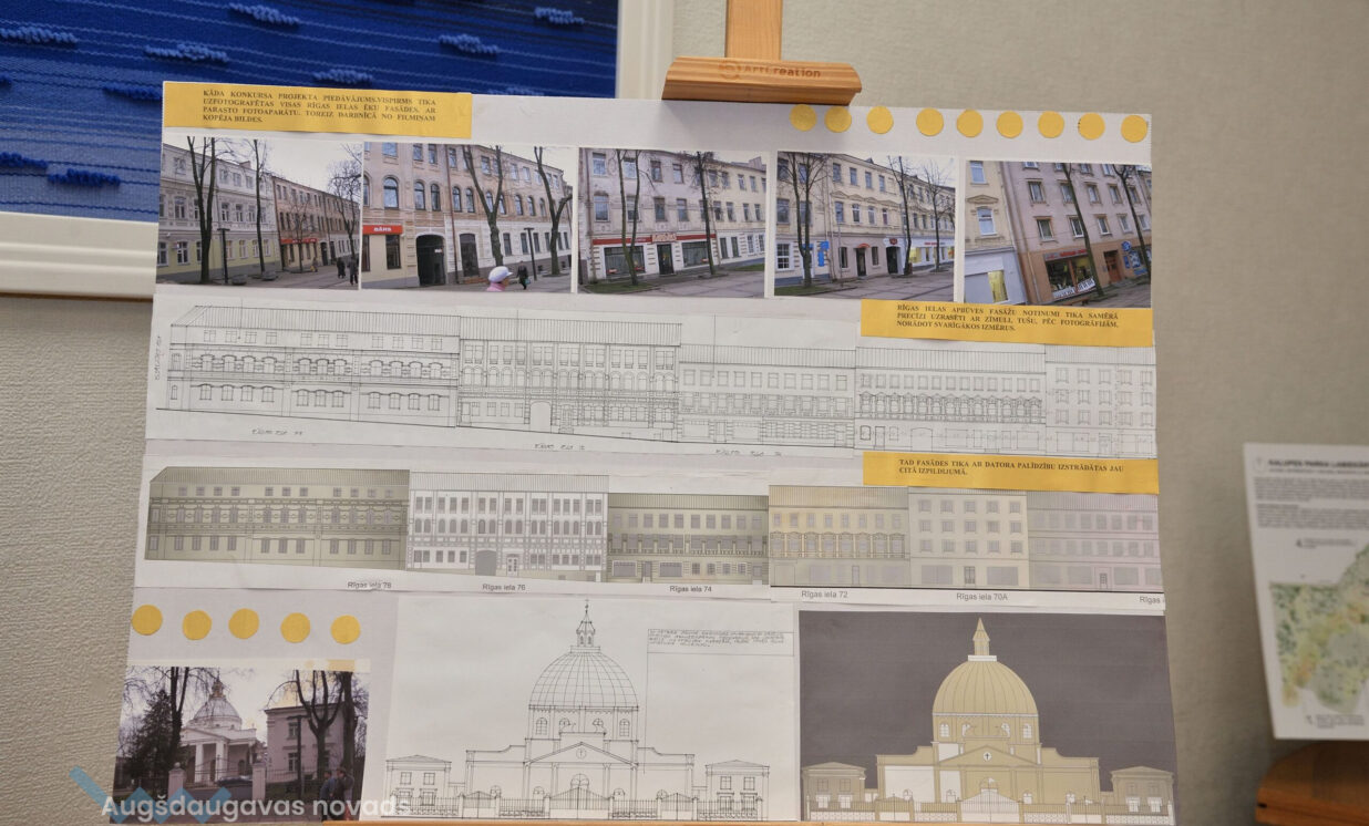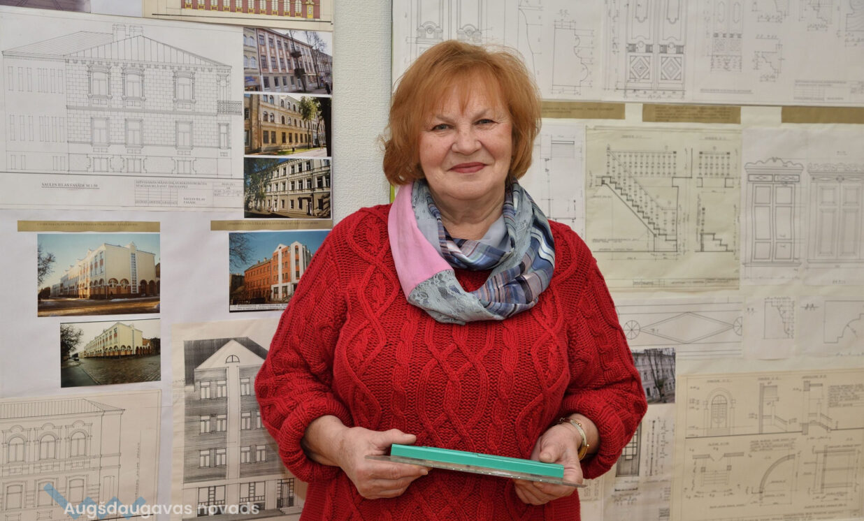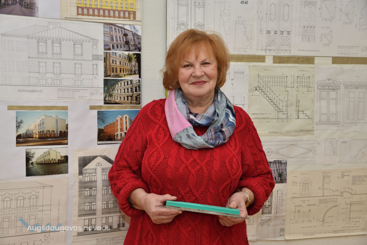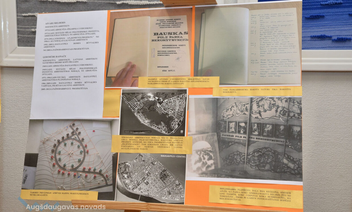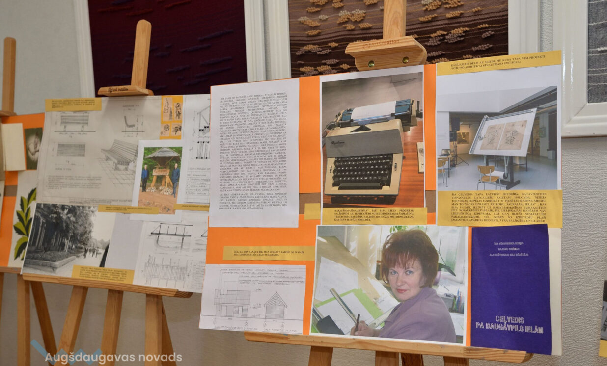 “Esam no pagājušā gadsimta, palikuši pēdējie, kas vēl rasē ar roku, jo jau gadus 20 tas tiek darīts ar datoru, tāpēc gribējām parādīt tās tehnikas un iespējas, ar kurām mēs strādājam,” teic Ģertrūde, kura arhitektes gaitas uzsāka 1974. gadā. Uz viena no stendiem redzama viņas diplomdarba titullapa, rakstīta ar roku ideāli glītā drukas rakstā, kas tapis ar šablonu palīdzību. Nezinātājs noteikti nodomātu, ka tas ir datorraksts. Augstskolā Ģertrūde apguvusi vairākus rokraksta veidus, ko agrāk izmantojusi ne tikai darbā, bet arī dažādu ielūgumu, apsveikumu un galda karšu izgatavošanā. “Mums studijās divus gadus bija burtu mācība, bija jāapgūst desmit šrifti – gotu, kaligrāfiskais, tehniskais, speciālais drukāšanas šrifts, arhitektoniskais un bija jāizdomā personīgais šrifts. Rakstāmmašīna bija jau solis uz priekšu. Kad atnācu strādāt, mums bija drausmīga klaboša mašīna, uz kuras mēs drukājām. Projektēšanu toreiz sākām ar četru krāsu zīmuļu komplektu. Tika izmantoti dažnedažādi varianti, mēs gan šķīdinājām kālija permanganātu, lai dabūtu brūnus toņus, gan akvareļkrāsas izmantojām. Vēlāk, pēc gadiem 10, parādījās flomāsteri, tad bliezām visu sarkanu, cik vien var krāsainu visu, oranžu. Arī materiāli agrāk tika izmantoti dažādi – papīrs, lavsāns, impregnēts audums.” Interesanti, ka visas dokumentu kopijas agrāk tika veidotas bez kopējamām mašīnām, jo tādu nemaz nebija. Kartes tika izgatavotas vairākos eksemplāros. “Kad sāku strādāt, kopijas tika taisītas ļoti interesantā veidā. Mēs rasējām uz caurspīdīgajām tušas un zīmuļu pauzēm, pēc tam tās izgaismojām, likām kastē, kur apakšā bija lampas, virsū bija stikls, uz kura uzlikām savu rasējumu un virsū gaismas jūtīgo papīru. Minūtes 5-10 turējām, pēc tam sarullējām, un sekretāre ātri skrēja uz speciālo melno kabinetu, kur vienā skapī lika šos rasējumus, kas attīstījās ar ožamo spirtu. Tautas valodā tās sauca par siņkām. Bija arī cits veids – ar zīmuli rasēto caur stiklu uz kaļkas pārvilka ar tušu,” Ģertrūde aizraujoši stāsta par dažādām tehnoloģijām, ko arhitekti agrāk pielietoja savā ikdienas darbā.