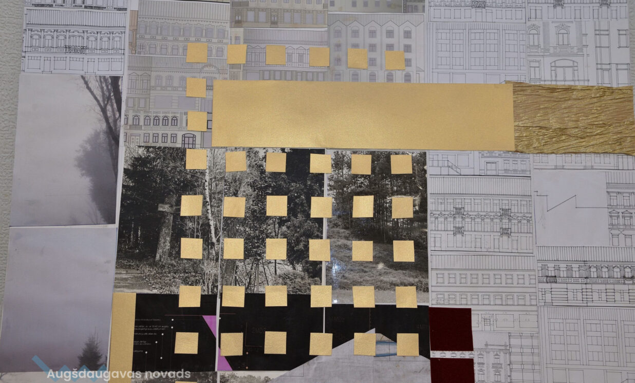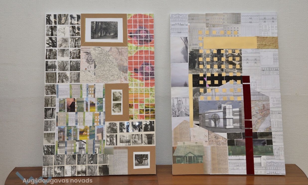 Izstādē var aplūkot stendus ar neparastām kolāžām, kas ir arhitektes brīvās fantāzijas lidojums. Kolāžas veidotas no fotogrāfijām, vecām kartēm, tajās ielikta visa viņas dzīve un vaļasprieki – meži, ziedi, dārzi. Ar šim kolāžām Ģertrūde vēlas parādīt, ka arhitektam jābūt apveltītam ne tikai ar radošumu, bet arī milzu pacietību, velkot perfektas līnijas un veidojot smalku detalizējumu.