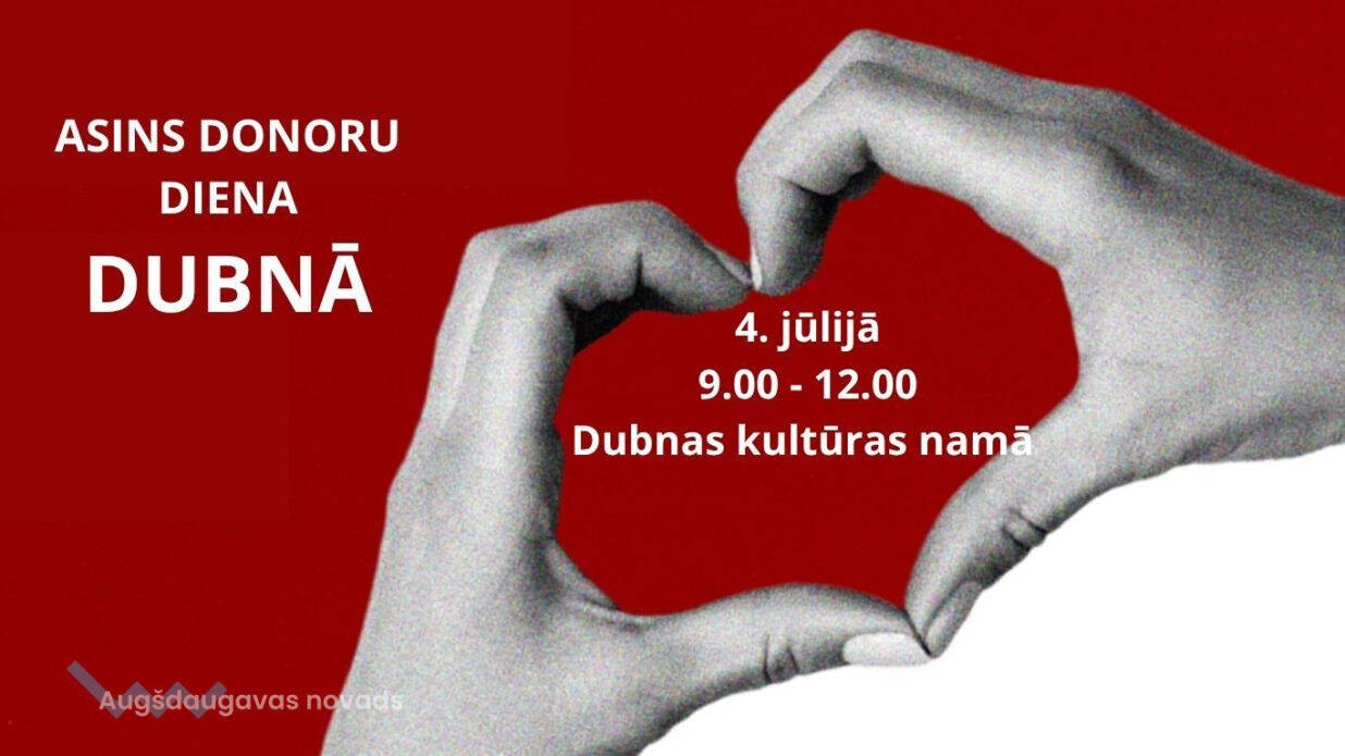4. jūlijā no 9.00 līdz 12.00 Donoru diena Dubnā, Dubnas kultūras namā (Nākotnes iela 1A).