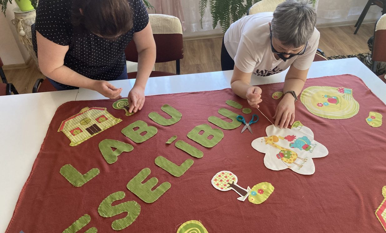 Par sponsorētajiem līdzekļiem iegādājāmies profesionālu šujmašīnu, tvaika gludekli, pledu, spilvenus un uzsākām organizēt akcijas norisi. Mūsu ideja bija izgatavot ar aplikācijām rotātu pledu un spilvenus, kas būtu kā mīļa dāvana atveseļošanās atbalstam.