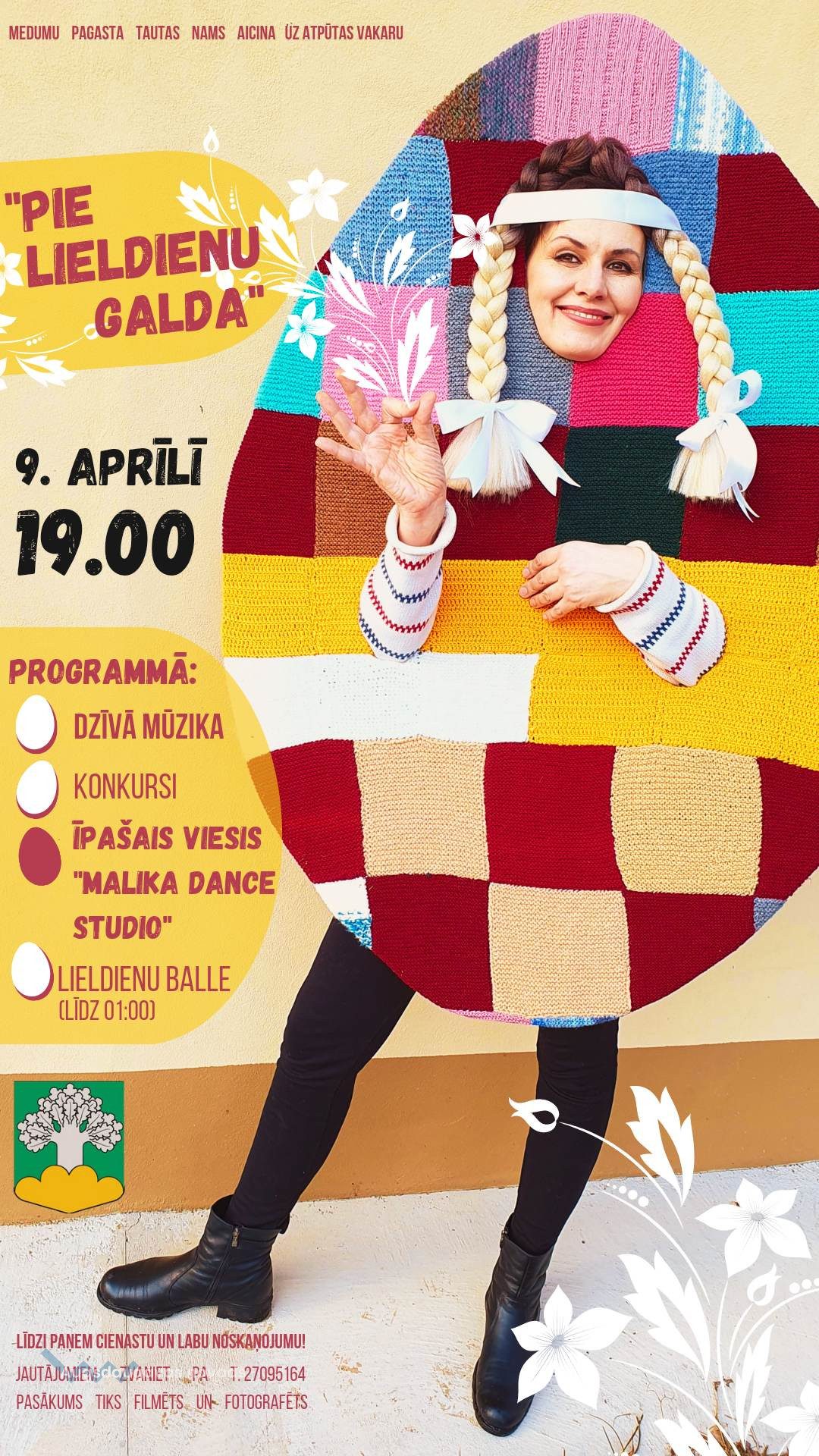 9. aprīlī plkst. 19.00 Medumu pagasta tautas nams aicina pieaugušos uz atpūtas vakaru “Pie Lieldienu galda”. Lieldienas ir svētki, kas ikvienam no mums saistās ar pavasara atnākšanu un dabas atmošanos, tāpēc aicinām jūs arī pamosties pēc ziemas un jauki pavadīt vakaru! Paredzēta dzīvā mūzika un aizraujošas vēderdejas ar īpašajiem viesiem no Daugavpils “Malika Dance Studio”. Paspēlēsim, pamēģināsim sevi aktieru lomā, pacīnīsimies par visstiprāko olu, kā arī padejosim līdz 01.00 . Līdzi droši ņemiet cienastu (kā arī stiprāko olu) un labu noskaņojumu!