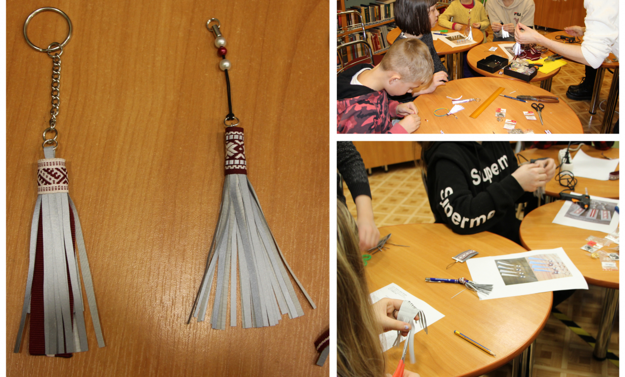 Lielākā daļa darbnīcas dalībnieku izvēlējās veidot patriotisku atstarotāju ar bārkstīm. Sākumā uz pusi salocīto atstarojošā auduma sloksnīti sagrieza bārkstīs. Tad maliņā pielīmēja cilpiņu. Pēc tam darbnīcas dalībnieki sarullēja atstarotāju un salīmēja kopā, izrotājot atstarotāja augšējo daļu ar prievīti. Noslēgumā pie cilpiņas piestiprināja piekariņu. Daži izrotāja savus atstarotājus ar baltām, sarkanām un koka pērlītēm. Visiem sanāca izsmalcināti un burvīgi atstarotāji. Otrais patriotiskā atstarotāja veids bija taisnstūrains atstarotājs ar prievīti pa vidu. Arī šīs dizains iepatikās darbnīcas apmeklētājiem sava lakoniskuma un elegances dēļ.