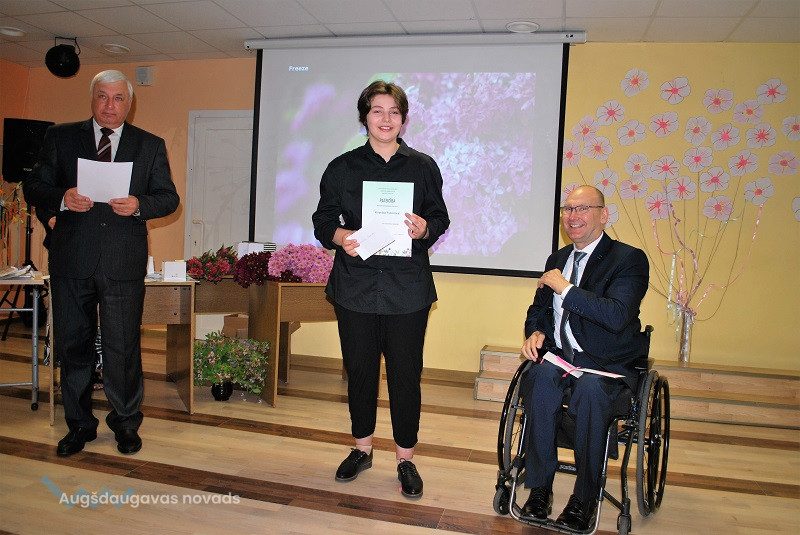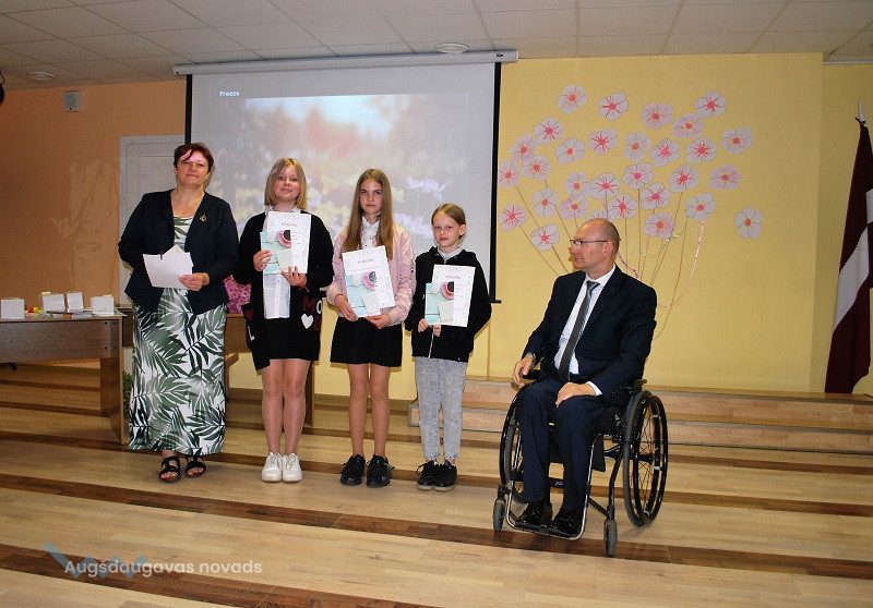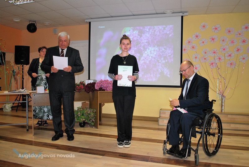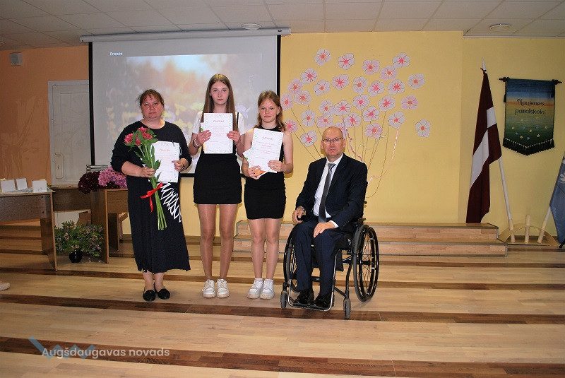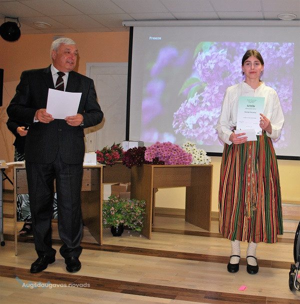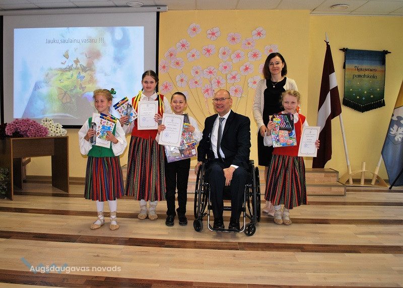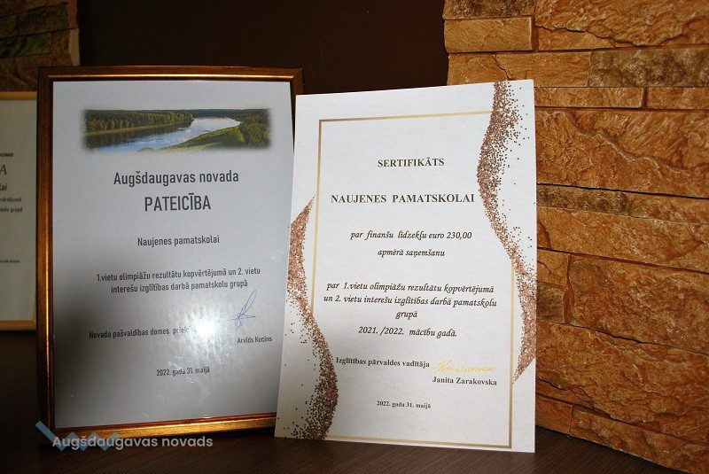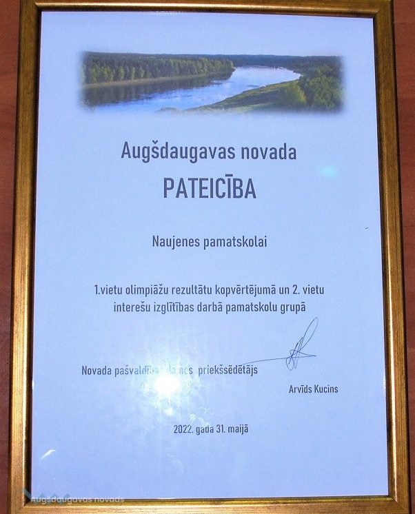 Labākos skolas pedagogus un skolēnus šajā dienā sumināja Augšdaugavas novada pašvaldības domes priekšsēdētājs Arvīds KUCINS. Augšdaugavas novada Pateicības, naudas balvas šajā dienā saņēma: 8. klases skolniece Anželika SIŅKEVIČA (1.vieta krievu val. olimpiādē 8.-12.klasēm 2.posmā, 2. vieta krievu valodas olimpiādē 8.-12.kl. valstī, 2. vieta latviešu val. un literatūras olimpiādē 8.-9.kl. 2.posmā), 9.klases skolniece Inna IVANOVA (Atzinība fizikas olimpiādē 9.-12.kl. 2.posmā, 1.vieta krievu val. olimpiādē 8.-12.kl. 2.posmā, Atzinība krievu valodas olimpiādē 8.-12.kl. valstī), 8.kl. skolniece Ksenija PANOVSKA (1.vieta krievu val. olimpiādē 8.-12.kl. 2.posmā), 9.kl. skolniece Meldra KOKINA (Atzinība bioloģijas olimpiādē 9.-12.kl., 1.vieta krievu val. olimpiādē 8.-12.kl.2.posmā, 2. vieta latviešu val. un literatūras olimpiādē 8.-9.kl. 2.posmā), 9.kl. skolnieks Ņikita ŠIŠKINS (1.vieta vēstures olimpiādē 9.-12.kl. 2.posmā – izvirzīts dalībai valsts līmenī, Pateicība fizikas olimpiādē 9.-12.kl. 2.posmā, Pateicība ķīmijas olimpiādē 9.-12.kl. 2.posmā), 7.kl. skolniece Veronika PANOVSKA (1. vieta matemātikas olimpiādē 5.-8.kl. 2.posmā). Augšdaugavas novada Pateicības par skolēnu sasniegumu kaldināšanu saņēma arī Naujenes pamatskolas skolotāji: Ligita KURSIŠA, Inga ČALENKO, Alita KOKINA, Inese LOCIKA, Sandra KOKINA. Sumināti tika arī bērnu vecāki. Esam priecīgi par gala rezultātu, jo kopvērtējumā starp Augšdaugavas novada pamatskolām mūsu skola ieguva 1. vietu mācību olimpiāžu rezultātu kopvērtējumā un 2. vietu interešu izglītības darbā pamatskolu grupā. Lepojamies, ka 1. vietu olimpiāžu rezultātu kopvērtējuma skola iegūts trešo gadu pēc kārtas.