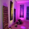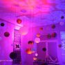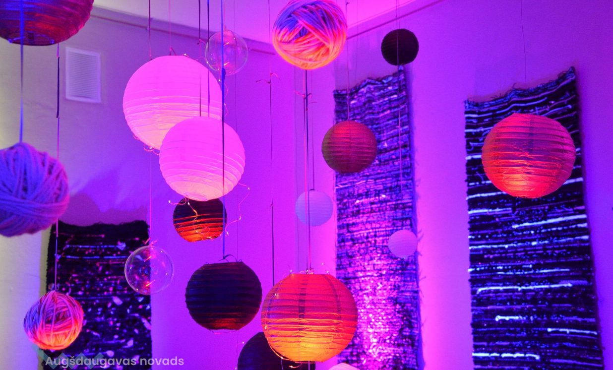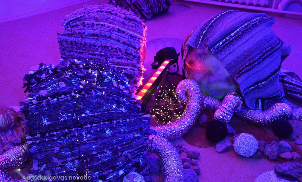 “Kosmosā nav ne ziemas un rudens, ne vasaras un ne pavasara, nav ne rīta, ne vakara, tāpēc esam radījušas īpašu telpu, kur aicinām ikvienu pabūt, meditēt, sajusties bezsvara stāvoklī un paklausīties mūziku,” teic Olga. Izstādes galvenie eksponāti ir Olgas un Intas austie darbi, kuros no dažādu krāsu materiāliem ieausti vien pašām autorēm zināmi noslēpumaini raksti – vēstis no kosmosa. Fona skan pieklusināta kosmiska mūzika un fragmenti no Antuāna de Sent-Ekziperī grāmatas “Mazais Princis”, kas rada īpašu atmosfēru un vēlmi ieslīgt gaisīgajā pufā un nedaudz aizmirsties.