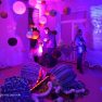 Kosmiskas domas un idejas 2021. gadā virmoja ne tikai Naujenes, bet arī Višķu pusē, tāpēc izstādē var redzēt arī Špoģu Mūzikas un mākslas skolas audzēkņu darbus no netradicionālās modes skates kolekcijas „Kosmoss. Planētas. Visums”. Tos izstādei sarūpēja mākslas skolas pasniedzēji Valdis Grebežs un Anita Jasinska. Lai arī pērn pandēmijas dēļ modes skate izpalika, taču audzēkņu veikums nepalika nepamanīts un rotā abu rokdarbnieču kosmisko izstādi.