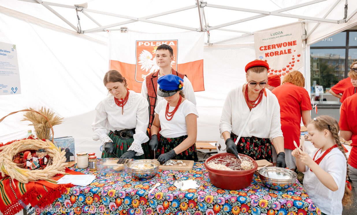 Taču festivāla programmā bija ne tikai koncerti – Latvijas mazākumtautību pārstāvji stāstīja par savu kultūru, rādīja lietišķo mākslu un ļāva izbaudīt kulināro mantojumu. Ukraiņi uz vietas gatavoja pampuškas, vereņikus un brošču, gruzīņi – hačapuri, igauņi cienāja ar spēka graudu maisījumu – kamu, krievi ar pankūkām, pīrāgiem un zaļo zupu, baltkrievi ar kartupeļu pankūkām, spāņi ar paelju, bet poļi ar dārzeņu salātiem un kūkām.