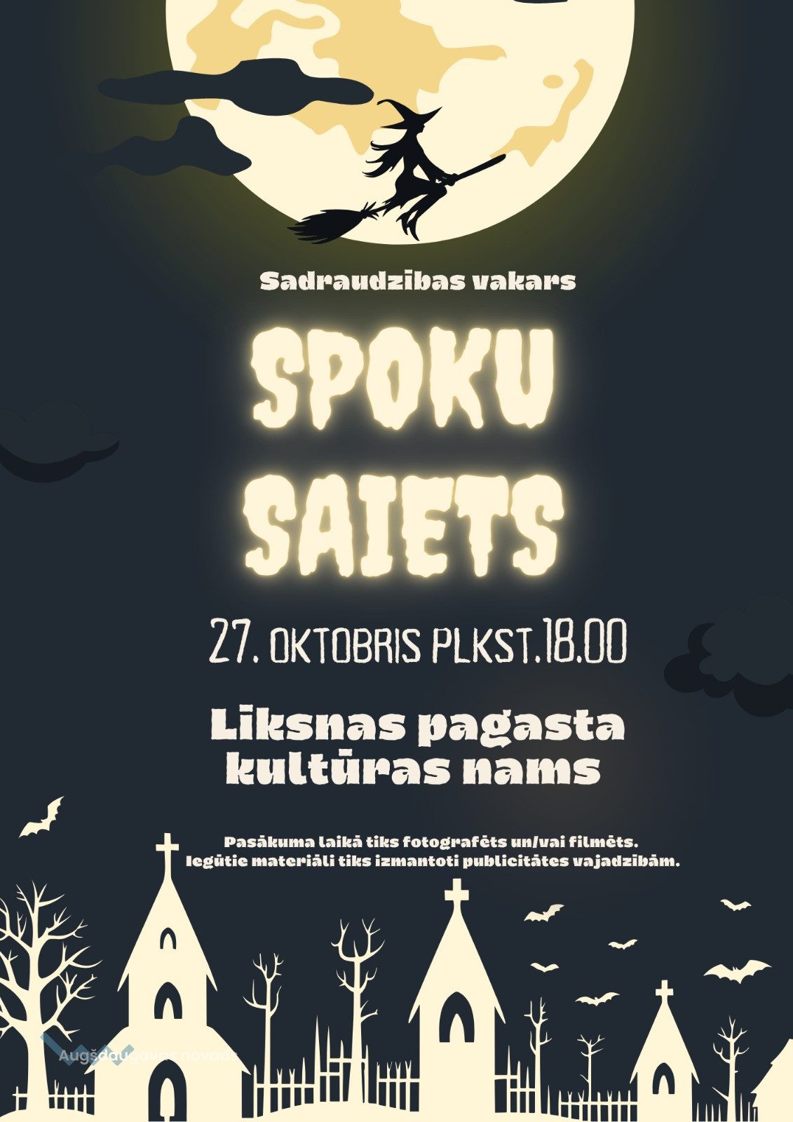 27.oktobrī no plkst. 18.00 līdz 23.00 Līksnas pagasta kultūras namā norisināsies Augšdaugavas novada jauniešu sadraudzības vakars “Spoku saiets”, ko organizē Vaboles jauniešu attīstības centra jaunieši no Vaboles, Līksnas, Kalupes un Nīcgales pagastiem. Pasākumā var piedalīties Augšdaugavas novada pagastu jaunieši vecumā no 13 līdz 25 gadiem kopā ar savu jaunatnes lietu speciālistu.