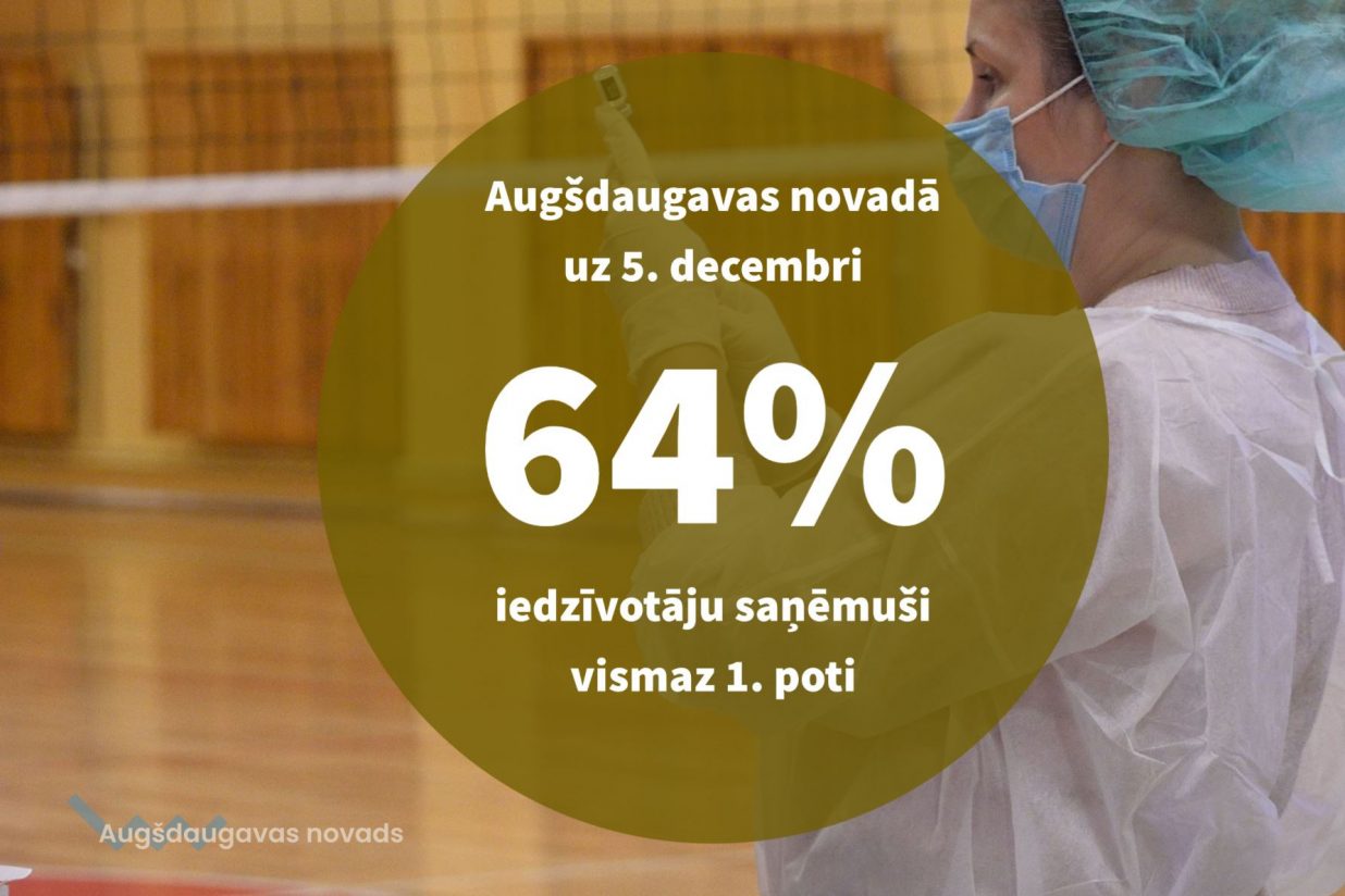 Augšdaugavas novadā vismaz 1. poti saņēma jau 64 % iedzīvotāju