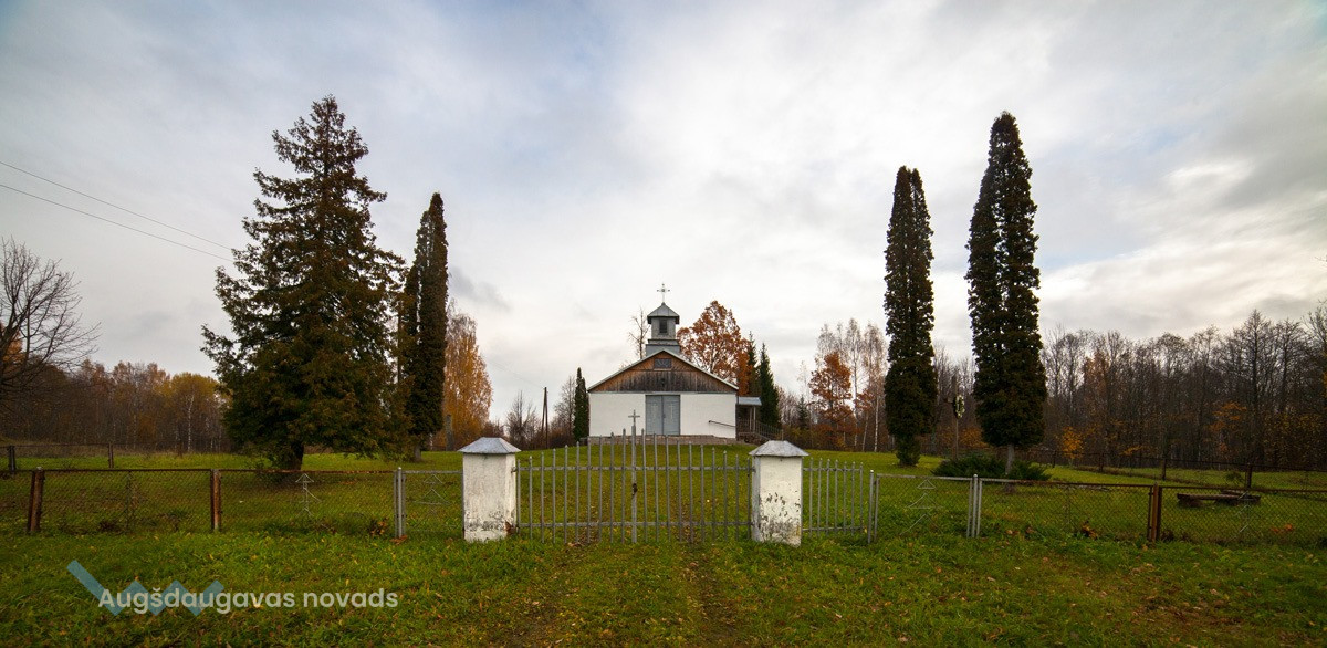 Iekštelpās bija betona grīda, bet altāra daļā un sakristejā — koka. Dievnamam bija trīs altāri — lielajā altārī bija Svētās Ģimenes glezna, sānu altāros — Jēzus Sirds un Svētās Terēzijas glezna. Otrā pasaules kara laikā, 1944. gada jūlijā baznīca nodega.