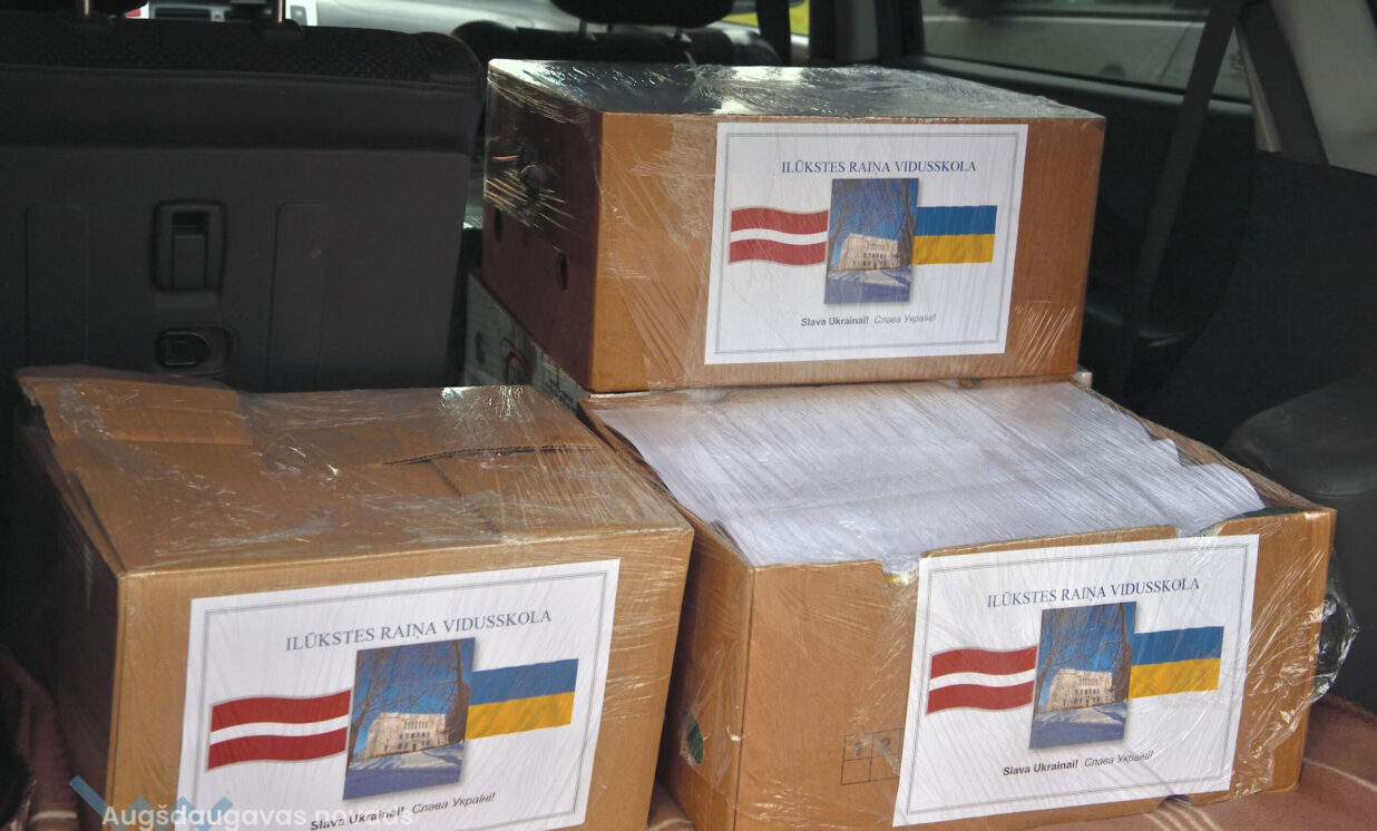 Kopā ar autobusu uz Ukrainu dosies ziedojumi no Ilūkstes Raiņa vidusskolas un Vaboles pamatskolas, kuras vāca ziedojumus atbilstoši sarakstam, ko piedāvā akcija “Baltijas skolas par uzvaru”. Skolēni un viņu ģimenes saziedojuši pārtiku (makaronus, zivju un gaļas konservus, cepumus, kafiju, tēju) un citas noderīgas lietas, piemēram, zeķes, mitrās salvetes, skūšanās piederumus, pretsaaukstēšanās medikamentus, lietus mēteļus u.tt.