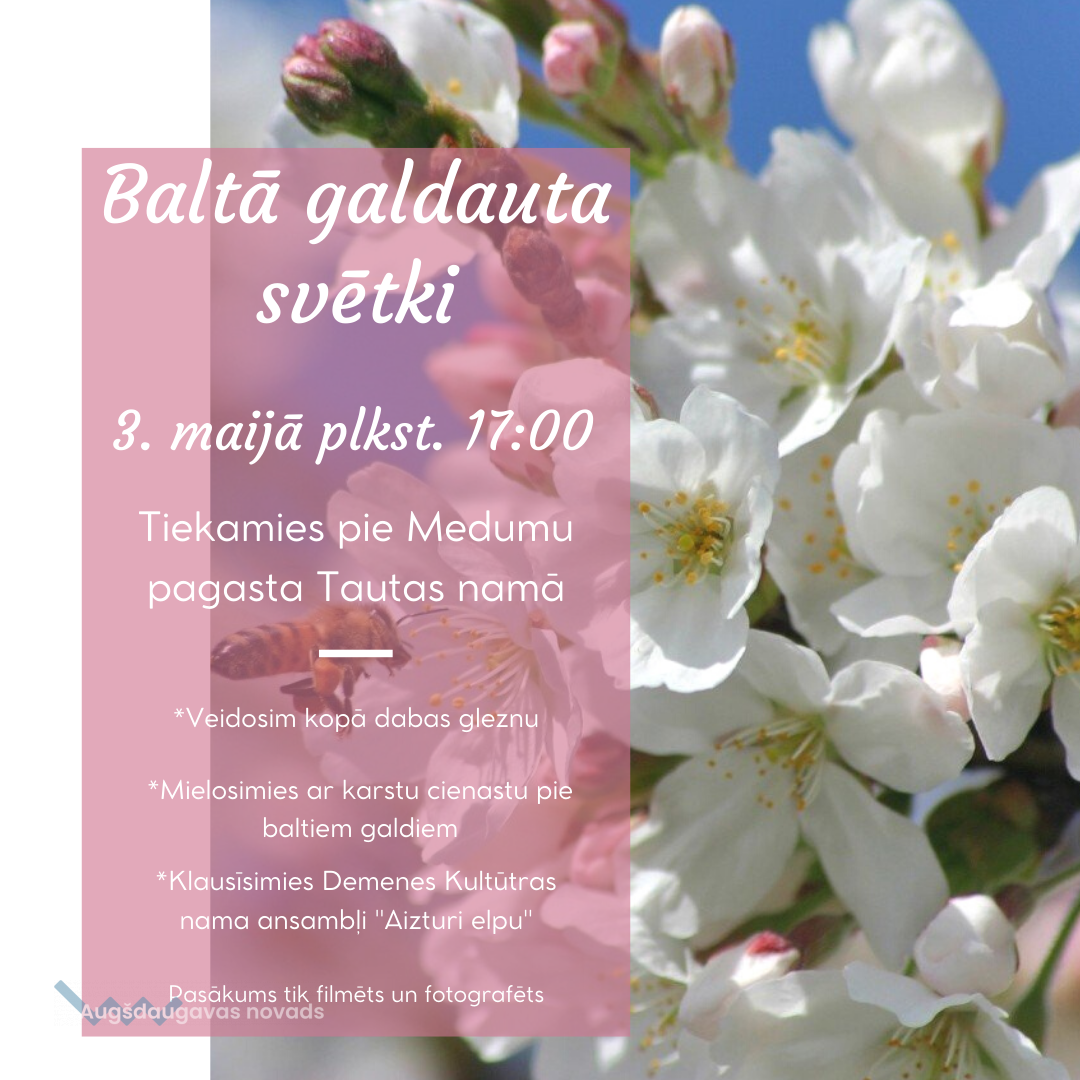 3. maijā plkst. 17:00 tiksimies pie Medumu Tautas nama. Kopā veidosim dabas gleznu, kurā jaunieši kopīgā sajūtā veidos valsts svinīgo svētku noskaņu. Šajā radošajā gaisotnē jums būs iespēja iepazīties ar galdautu izstādi, kurā piedalīsies Medumu rokdarbu meistari.