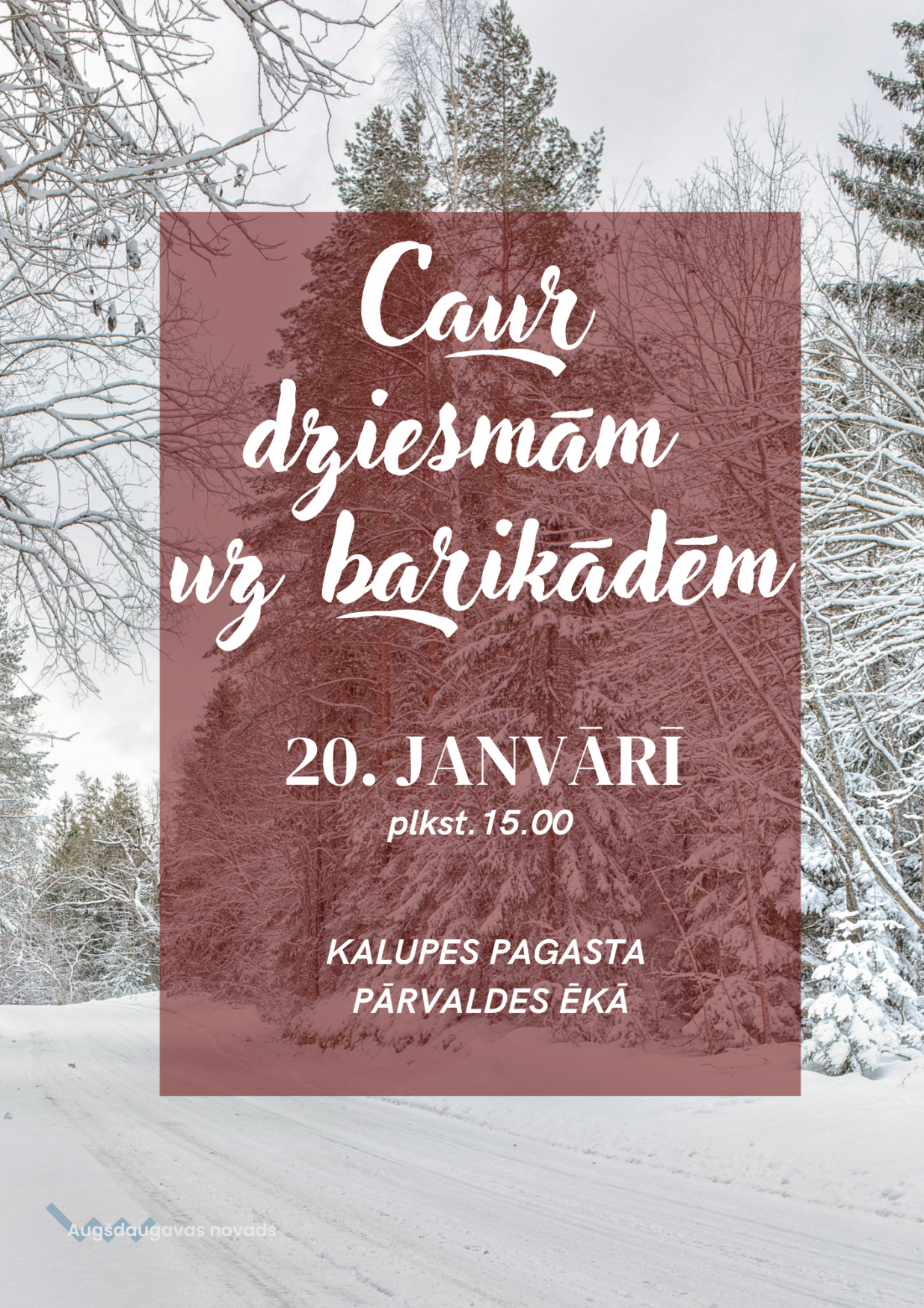 20. janvārī plkst. 15. 00 Kalupes pagasta pārvaldes namā aicinām iedzīvotājus uz barikāžu aizstāvju atceres dienas pasākumu. Caur dzeju, dziesmām un barikāžu dalībnieku stāstiem apzināties 1991. gada janvāra notikumus. Noskatīties Augšdaugavas novada veidoto dokumentālo filmu “Atcerēties, lai neaizmirstu” un kopīgi baudīt tēju ar pīrādziņiem.