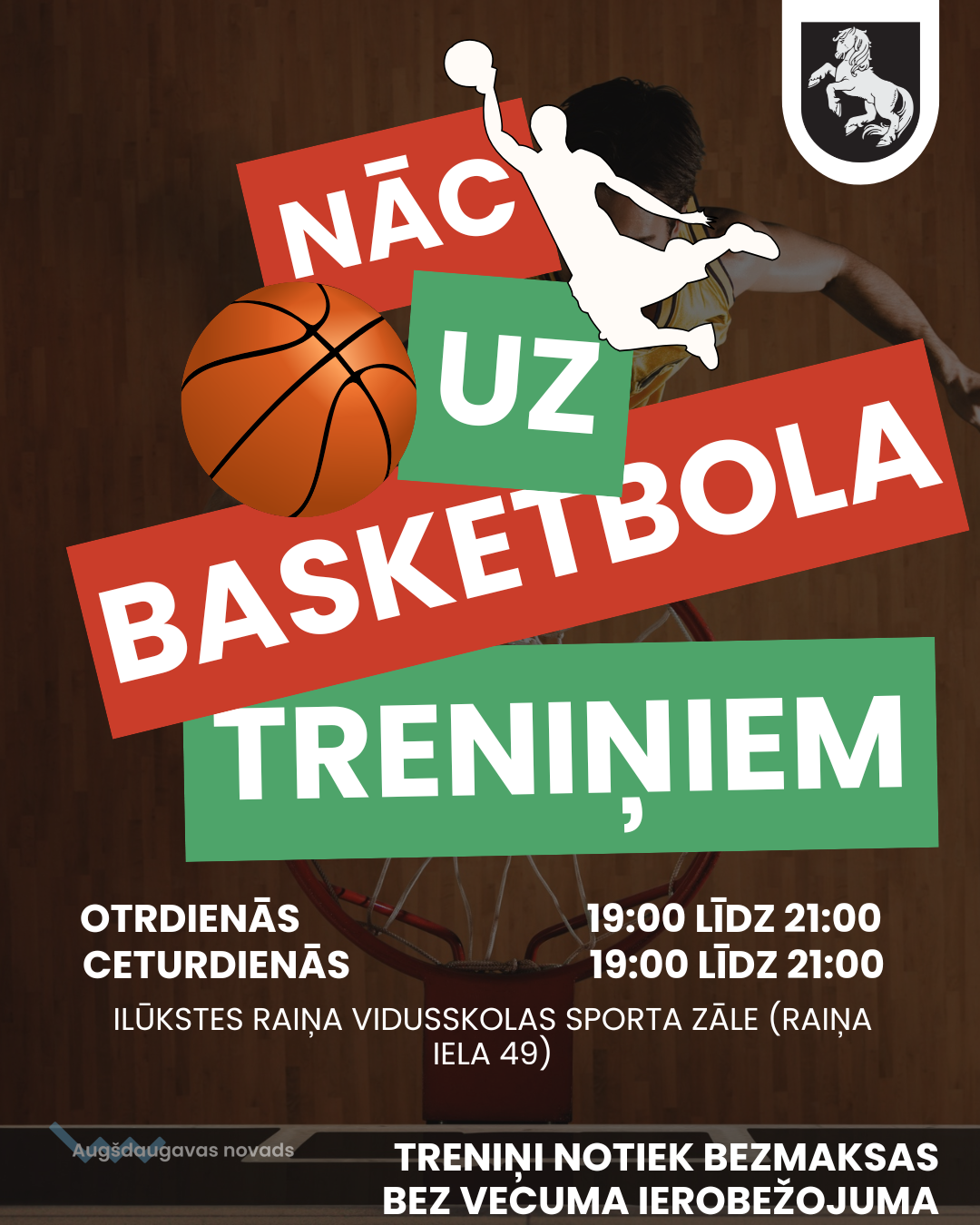 Iedzīvotāji tiek aicināti uz bezmaksas basketbola treniņiem. Vēlams ar zināšanām, kā spēlēt šo sporta veidu.