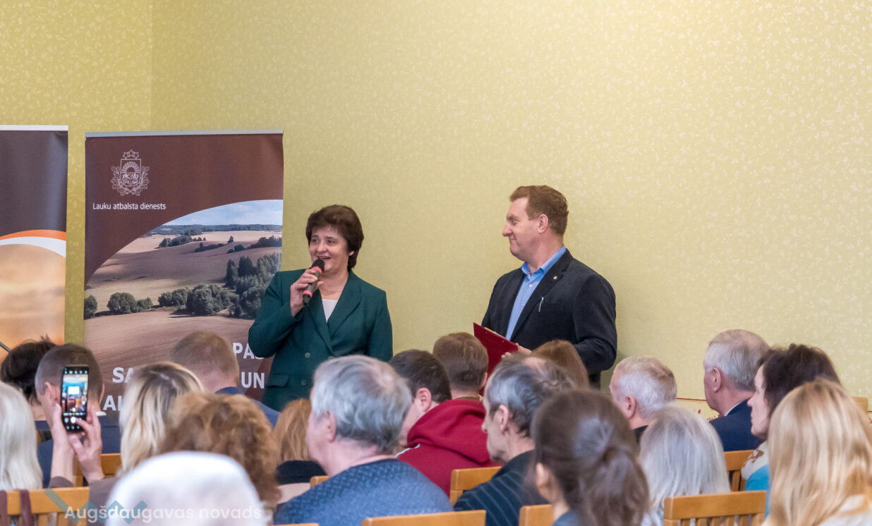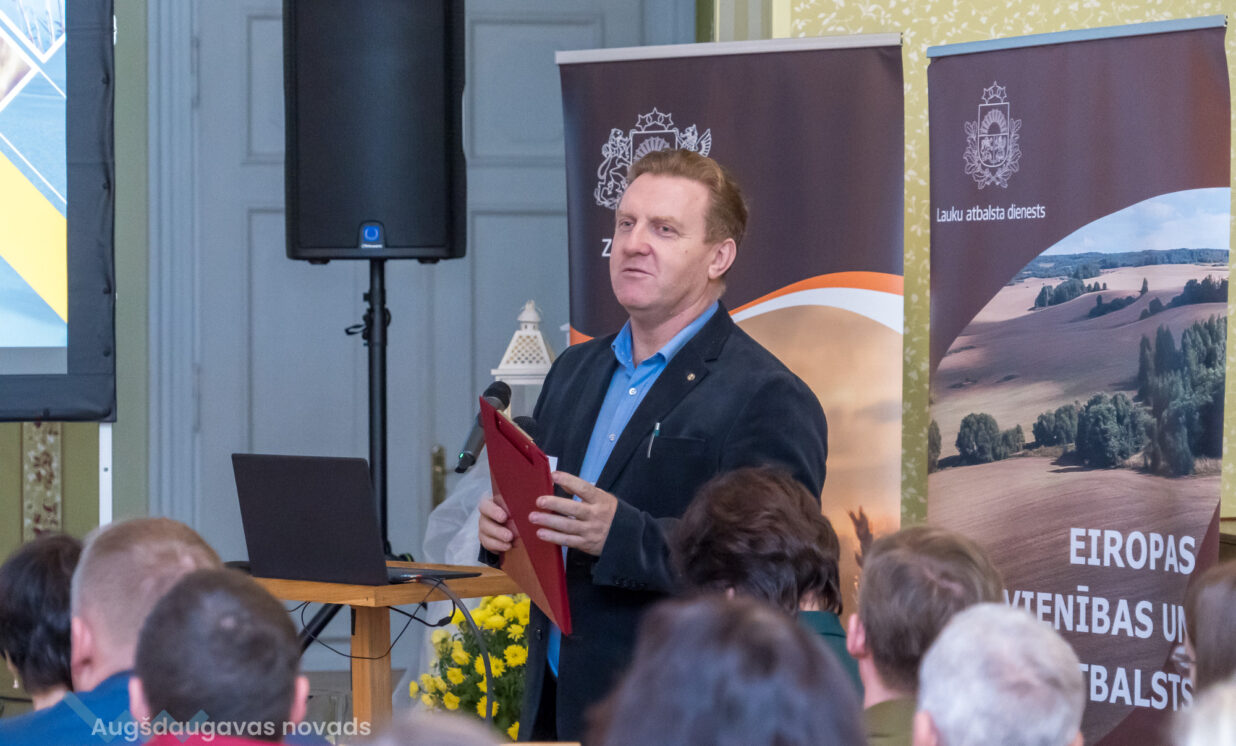 Lauku atbalsta dienesta (LAD) direktors Andris Grundulis izstāstīja nozīmīgākās LAD aktualitātes, uzsvaru liekot tieši uz Dienvidlatgales reģionu. Lauksaimnieki tika iepazīstināti ar maksājumu salīdzinājumu par 2022. - 2023. gadu dažāda veida saimniecībām, kā arī ar LAD platību maksājumu grafiku no 2024. gada oktobra līdz 2025. gada jūnijam. A.Grundulis uzsvēra, ka LAD konstatē neprecizitātes zaļo joslu ierīkošanā, ir konstatēti gadījumi, kad nav pareizi iesēta starpkultūra vai uz lauka ir atstāti pērnā gada ruļļi. Tāpat direktors izstāstīja, kāda ir lauku monitoringa jaunā kārtība, kas nāk pretī lauksaimniekam, uzreiz nepiešķirot sankcijas par neprecizitātēm.