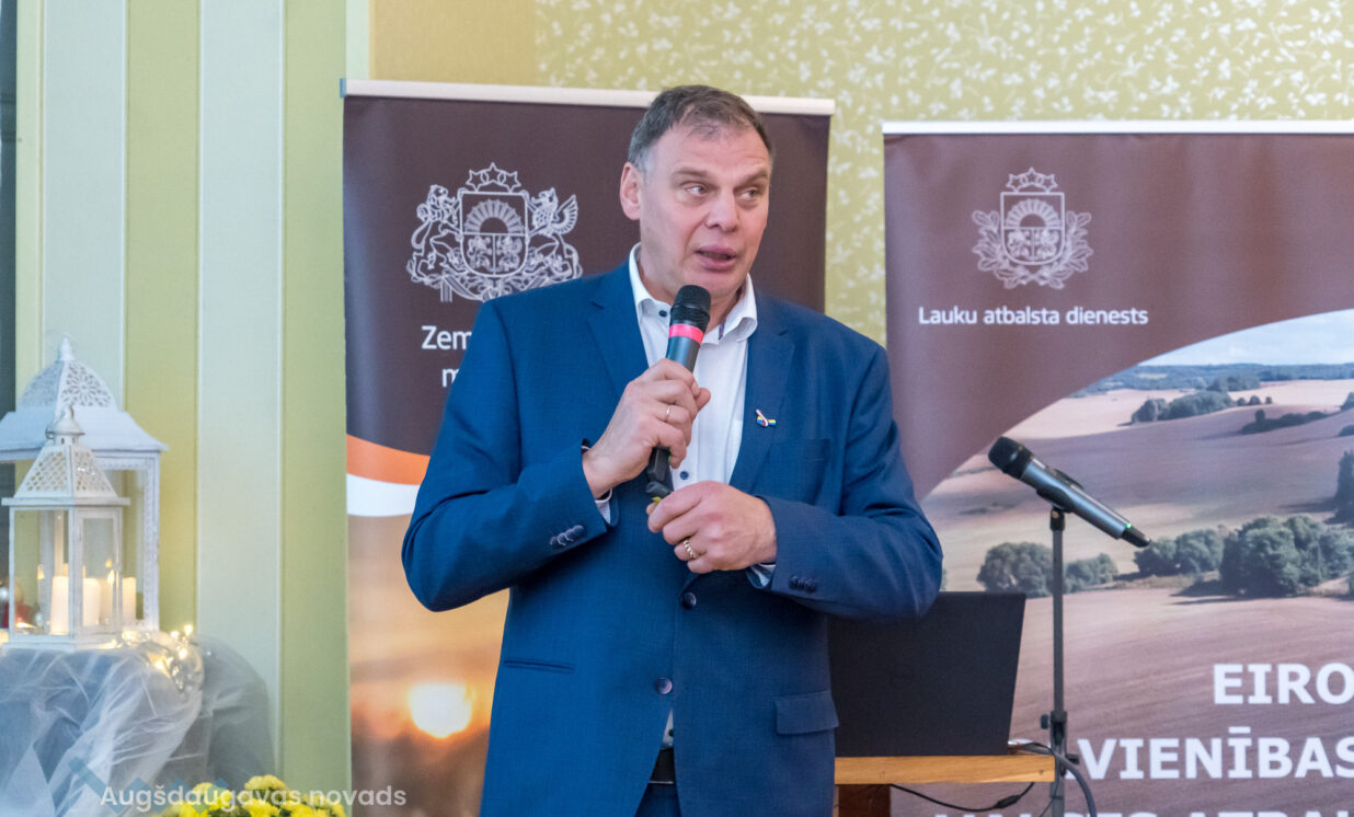 Zemkopības ministrs Armands Krauze iepazīstināja ar nozīmīgākajām aktualitātēm lauksaimniecības nozarē: “Zemkopības ministrija šogad ir pietiekami labi pastrādājusi, lauksaimniekiem atbalsts finansiālā ziņā nākamgad būs tāds pats kā šogad, nebūs samazinājums. Manuprāt, tā ir labākā un svarīgākā ziņa.” Ministrs uzsver, ka šobrīd tirgus daudzās jomās stagnē, it sevišķi graudkopībā, tāpēc ir ļoti nozīmīgi, ka ir pieejams dažāda veida atbalsts, piemēram, apdrošināšana ar izdevīgākiem nosacījumiem. Tāpat viņš atzīmē, ka, rezultējoties pērn notikušajiem protestiem, ministrija ir panākusi birokrātiskā sloga samazināšanos lauksaimniekiem: “Mēs, lauksaimnieki, bijām neapmierināti ar visu to, kas bija jāsniedz, papīru daudz, atskaites ļoti daudz. Šī gada laikā esam samazinājuši visu tik daudz, cik vien tas ir iespējams. Agrāk bija atskaitēs ļoti daudz jāfotografē, tagad ir atlikusi tikai viena lieta - minimālā augsnes apstrāde, jo tur savādāk nevar saprast, kas ar lauku ir darīts.” A.Krauze iezīmēja to, ka, tuvojoties jaunajam plānošanas periodam, noteikti būs kādas pārmaiņas, viņš uzver, ka nākošais būs aktīvu diskusiju gads, 2026. gadā tiks strādāts pie likumdošanas direktīvām un regulām, savukārt, 2027. gadā viss izveidotais jau būs pamazām jāievieš Latvijā. Ministrs stāsta, ka ir grūti prognozēt, kas notiks ar lauksaimniecības nozares finansējumu nākotnē, jo šobrīd Eiropas Savienībā prioritāte ir drošība un aizsardzība, tomēr finansējums nedrīkstētu būt mazāks kā šobrīd.