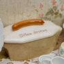 Kolekcijā, kas atrodas bijušo kopmītņu telpās, ir neskaitāmi daudz porcelāna šķīvju, krūzīšu, bļodu, tējas kanniņu un citu trauku. Ir arī īpaši eksemplāri, kas Ērikai ļoti patīk: “Visvecākais no maniem traukiem ir terīne, kas nāk no vecmammas. Atceros, bērnībā viņa tur lika iekšā gan smalkmaizītes, gan biezputras, viss ilgi saglabājās silts. Ir trauki, kas nāk no Kuzņecova rūpnīcas. Austrumu servīze - tā ir tik skaista un burvīga, pilnīgi bail elpot tās klātbūtnē.” Arī šiem traukiem ir dažādi stāsti, kā tie nonākuši kolekcijā: “Kad es sāku strādāt Sarkanajā krustā, tur vienreiz bija ugunsgrēks. Pēc negadījuma viss bija melns, nokvēpis - mazgāju bufeti, skatos, augšā kaut kas liels stāv. Ceļu nost, tur bija šis Kuzņecova šķīvis, stāvēja un mani gaidīja.” Kolekcijā var atrast arī sāls un piparu trauciņus, kas tika izglābti no vienas vecas mājas Bebrenē, burtiski dažas stundas pirms ēkas nojaukšanas. "Rīgas porcelāna rūpnīcas" trauki kolekcijā ir ļoti dažādās versijās, piemēram, viena servīze ar vairākiem dekoliem.