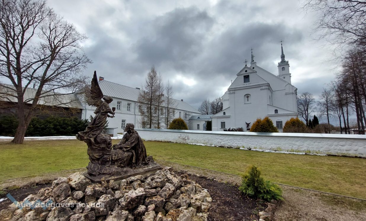 Baznīcas dārzā tika apraudzīts Viļānu klostera bijušā draudzes pārvesta un priekšnieka Mariāņu tēva Benedikta Skrindas (1868 – 1947)kapa vieta. Viļānu klosterī tēvs Benedikts kalpoja 14 pēdējos savas dzīves gadus. Tēvs Benedikts pildīja prāvesta, klostera priekšnieka, novicināta maģistra un citus pienākumus. Tēvs Benedikts labi pārzināja saimnieciskā lietas, pats vadīja būvdarbus klosterī un zemes apstrādāšanā ievēroja modernās zemkopības prasības. Viss tika savests kārtībā, klosterim tika uzbūvēts otrais stāvs, ar laiku sāka funkcionēt saimniecība, kas bija viena no labākajām Latvijā. Tēvs Benedikts savas dzīves laikā rūpējās par Latgales tautas garīgo izglītību, tulkojot un izdodot vairākus garīgā satura darbus: „Svātam Stanislavam Kostkai” (1913), „Atmiņas par bazneickungu Kazimiru Skrindu” (1936), tulkojis latgaliešu valodā pasaulslaveno Kempenas Toma darbu „Par Kungam Jezum pakaļdareišonu.” (1914, 1936).