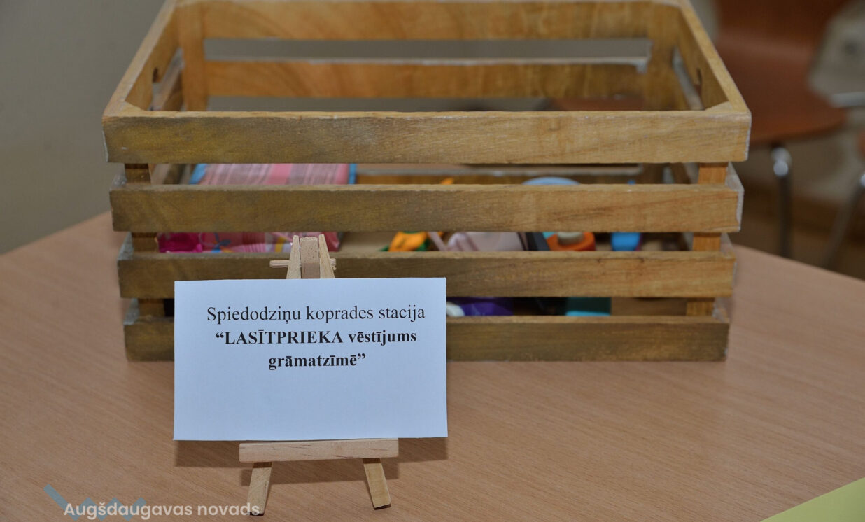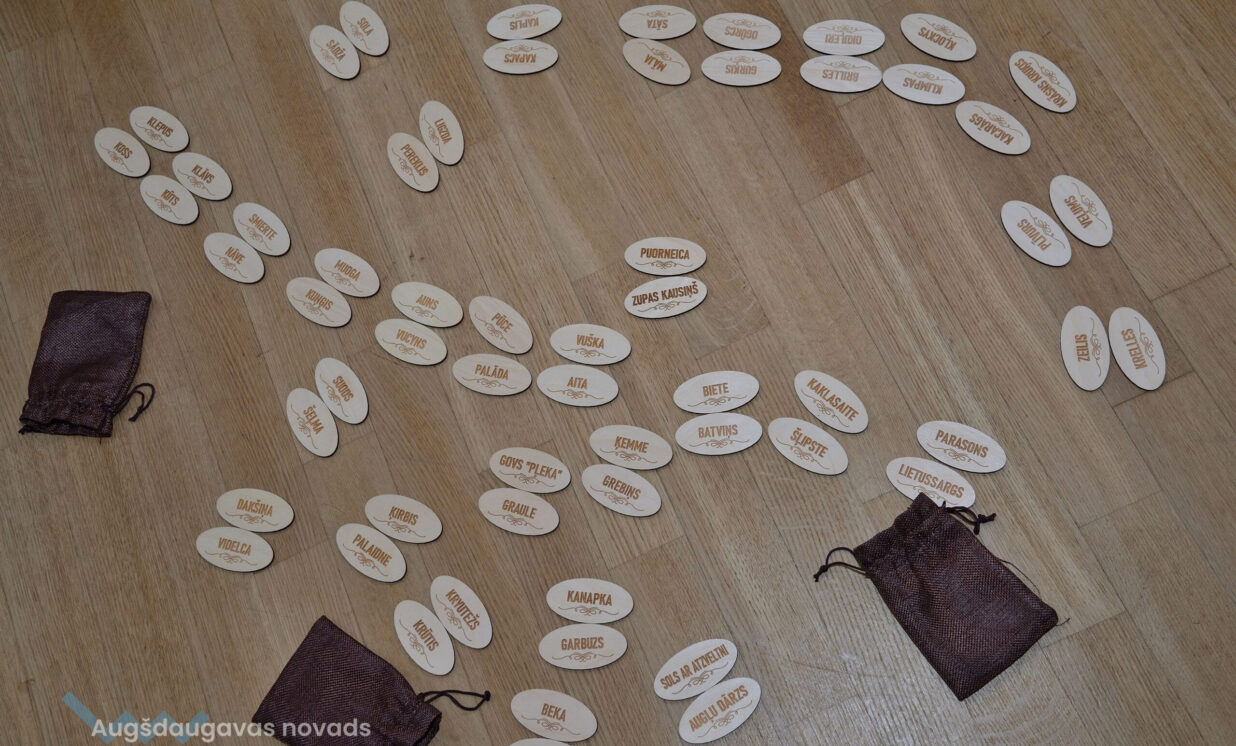 Kamēr žūrija devās apspriesties, Augšdaugavas novada bibliotēku metodiskā centra vadītāja Žaneta Moiseja aicināja klātesošos uzspēlēt dažādas galda spēles, tostarp ielūkoties “Putreņvourdu voceleitē” un pārbaudīt savas zināšanas latgaliešu valodā.