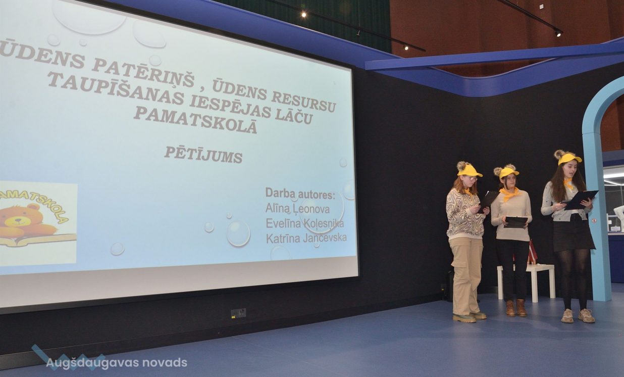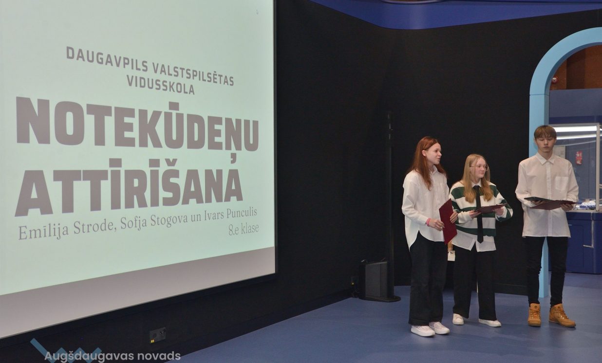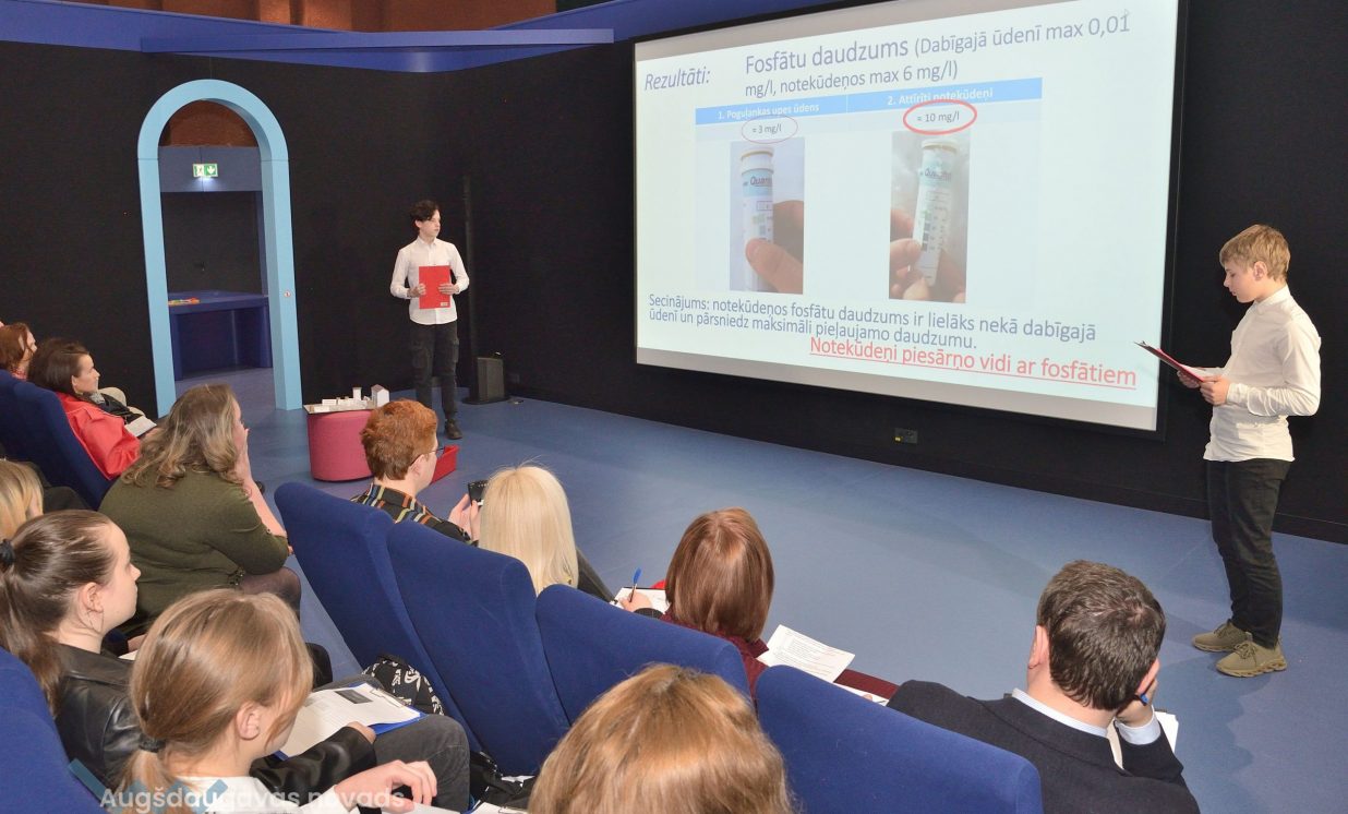 Ivars, Emīlija un Sofija no Daugavpils Valstspilsētas vidusskolas: “Mēs veicām projektu par notekūdeņu attīrīšanu. Mēģinājām noskaidrot, kas ir notekūdeņi, kas rada piesārņojumu, un piesārņojumu veidus.” Jaunieši devās uz ūdens attīrīšanas staciju Daugavpilī, kur vēroja, kā notiek bioloģiskā un mehāniskā attīrīšana.