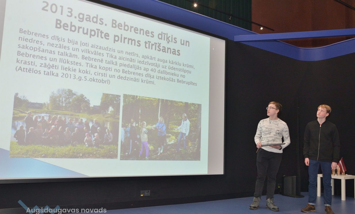 Trīs jauniešu (Miķelis, Māra un Elīza) komanda no Vaboles vidusskolas pētīja lauksaimniecības zemes piesārņošanas problēmu un ūdens kvalitāti: “Mēs bijām aizbraukuši uz trīs dažādām pļavām, kur ņēmām zemes paraugus. Tas bija Līksnas pagastā pie Daugavas krasta.” Jaunieši vēlējās noskaidrot fosfātu un nitrātu līmeni dažādos attālumos no ūdens.
