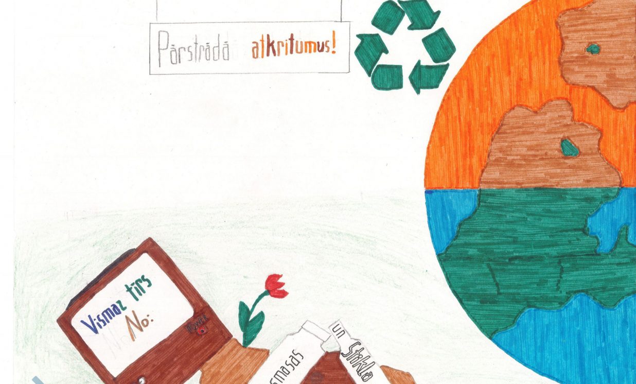 Bērni savos darbos radoši ataino klimata pārmaiņu tēmu