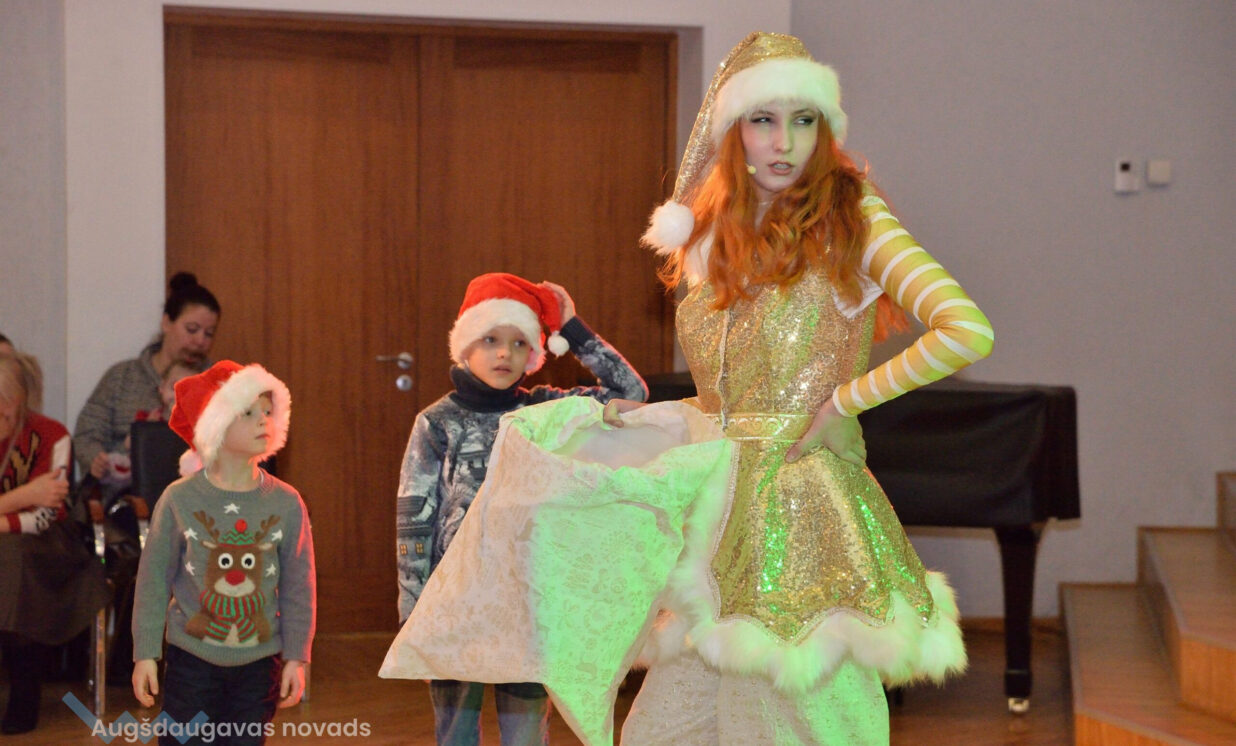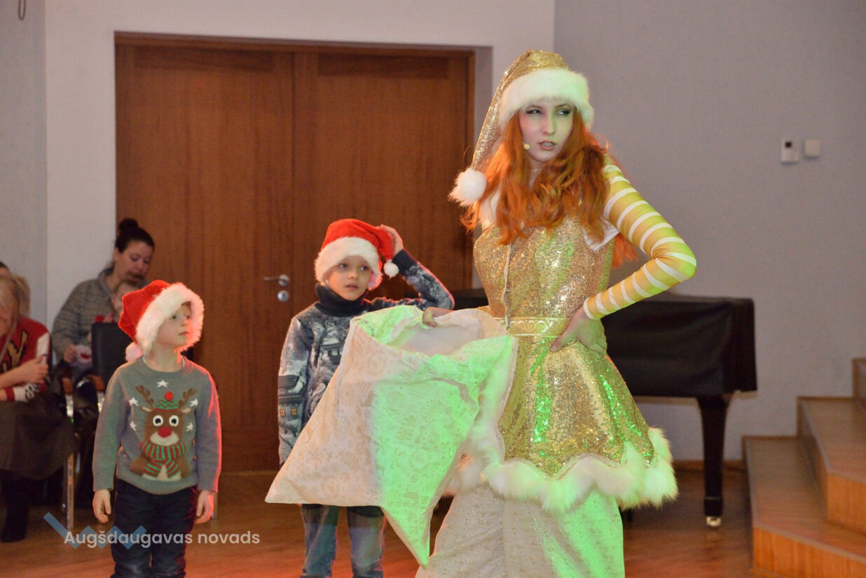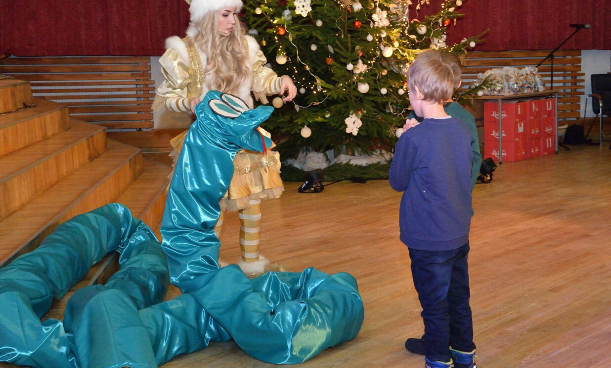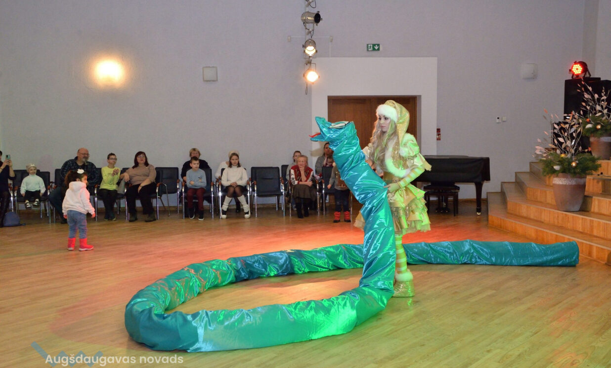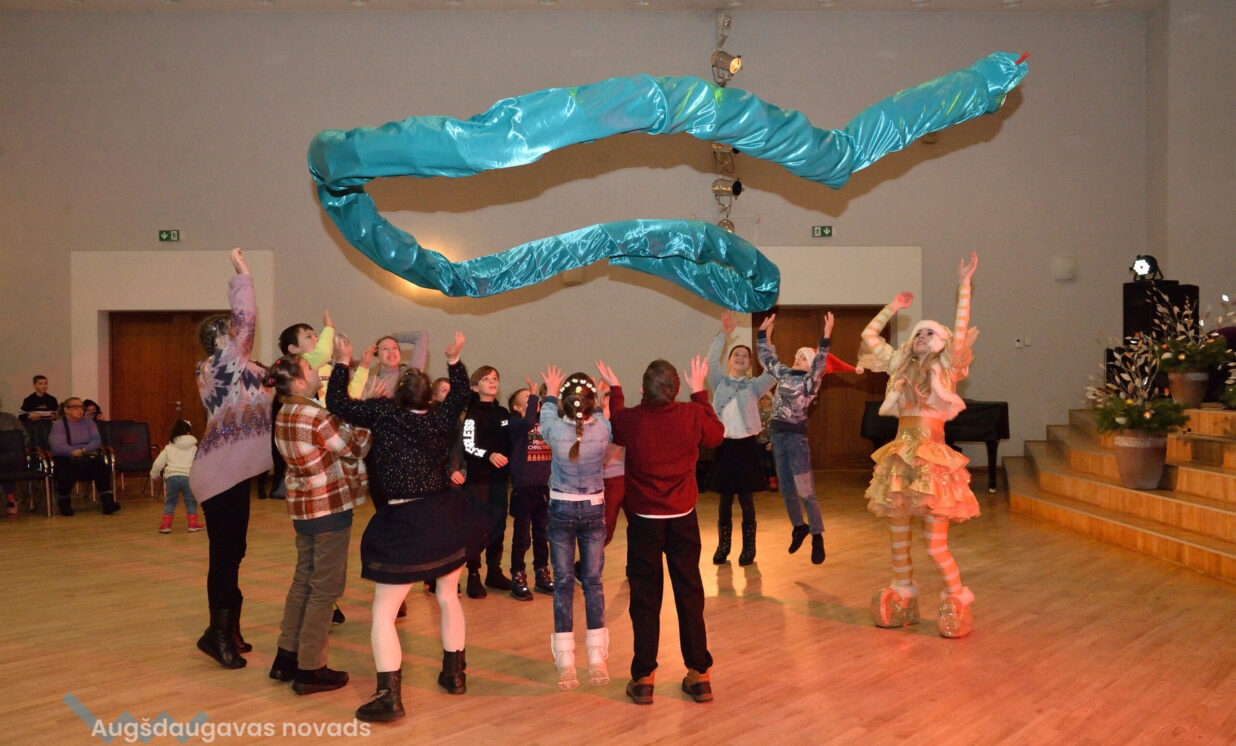 Pasākumu kuplināja divi jautri rūķi, kuri ar savām rotaļām, dziesmām un dejām izklaidēja bērnus, radot patiesu svētku atmosfēru. Bērni ar prieku iesaistījās dažādās aktivitātēs. Kulminācija, protams, bija Ziemassvētku vecīša ierašanās, kurš aicināja bērnus pielabināt nākamā gada simbolu – Čūsku.