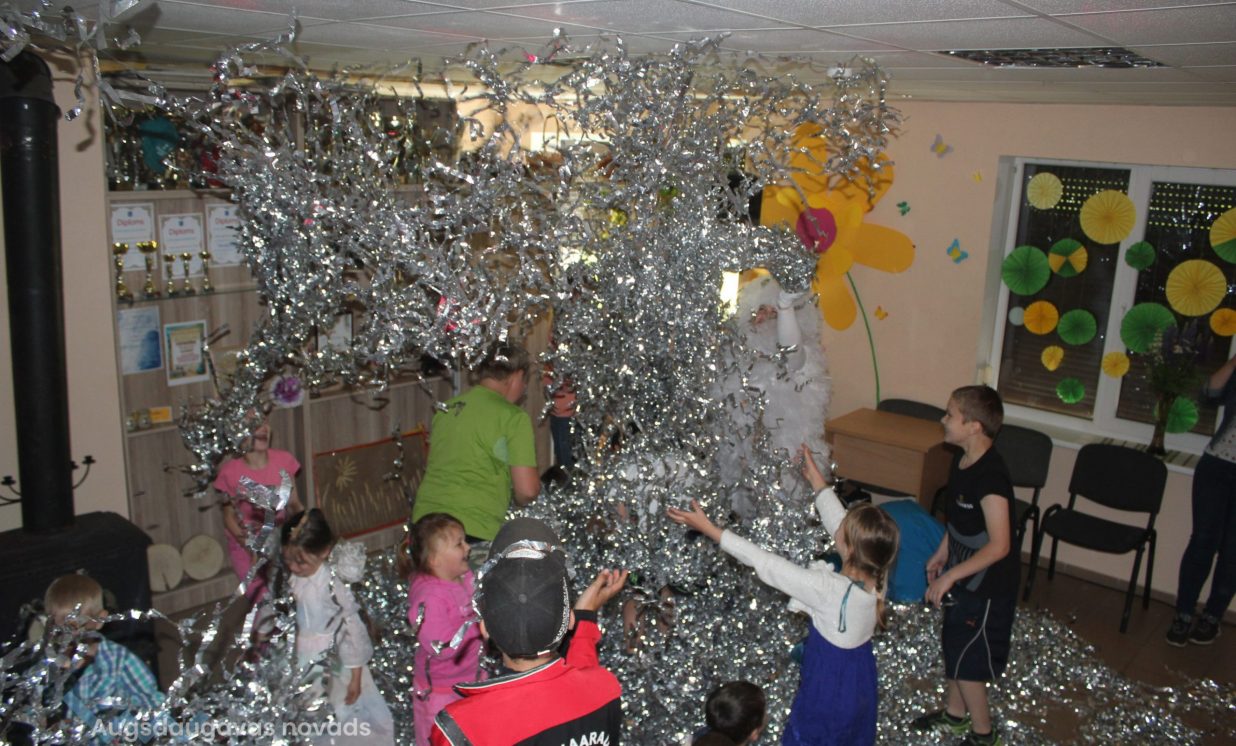 Bērnus un viņu vecākus sagaidīja vēl viens pārsteigums - papīra ballīte, kur vienaldzīgs nevarēja palikt ne liels, ne mazs. Mūzikai skanot, lija papīra lietus, sajūsminātie bērni „peldējās” papīra un pozitīvu emociju jūrā.